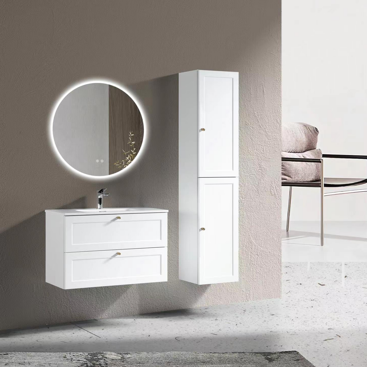 Den stilrene, rektangulære formen passer til Lind Comfort servantskap. Servanten er hvit og er 80 cm bred.