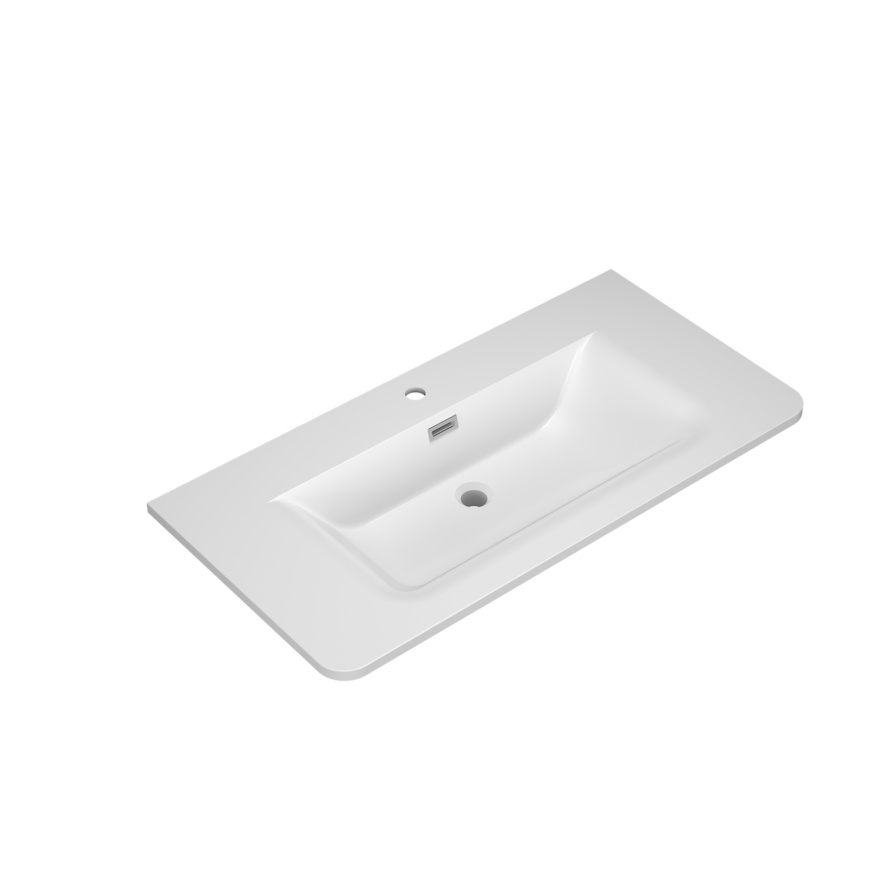 Lind Park er en serie moderne servanter til baderomsmøbel. Denne servanten er 100 cm bred, og kommer med overløp.