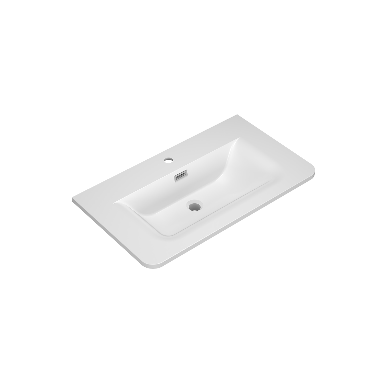 Lind Park er en serie moderne servanter til baderomsmøbel. Denne servanten er 80 cm bred, og kommer med overløp.