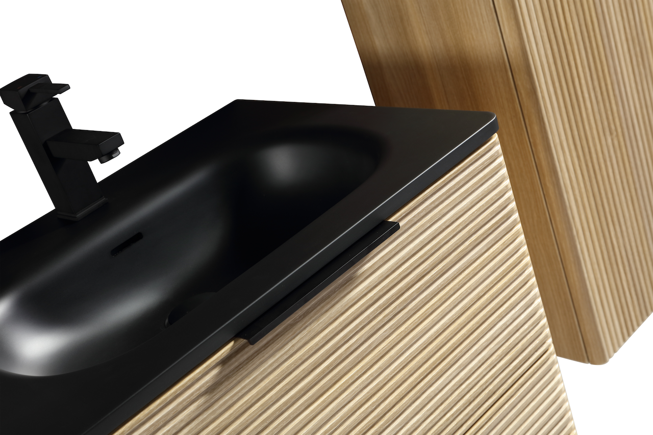 Lind Toulouse er en serie moderne servanter, som passer til Lind Timber og Lind crema baderomsmøbel. Denne servanten er matt sort og 60 cm bred.