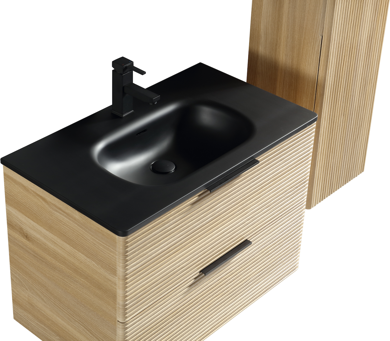 Lind Toulouse er en serie moderne servanter, som passer til Lind Timber og Lind crema baderomsmøbel. Denne servanten er matt sort og 80 cm bred.