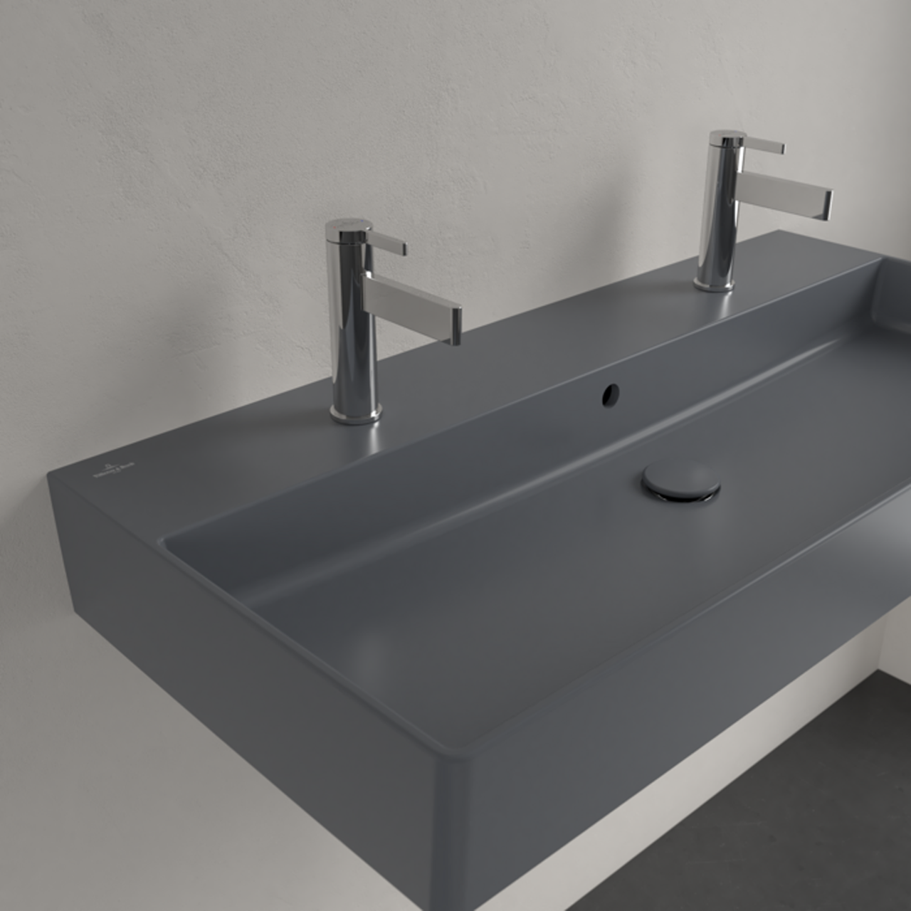 Memento 2.0 er en svart matt dobbeltservant beregnet for veggmontering. Servanten kommer med hull til blandebatteri og er utført i Villeroy & Bochs TitanCeram-porselen, som tillater ekstra tynne servantvegger som fortsatt er både solide og lettstelte. Matte farger er moderne, og denne servantserien gir badet ditt et urbant utseende.
