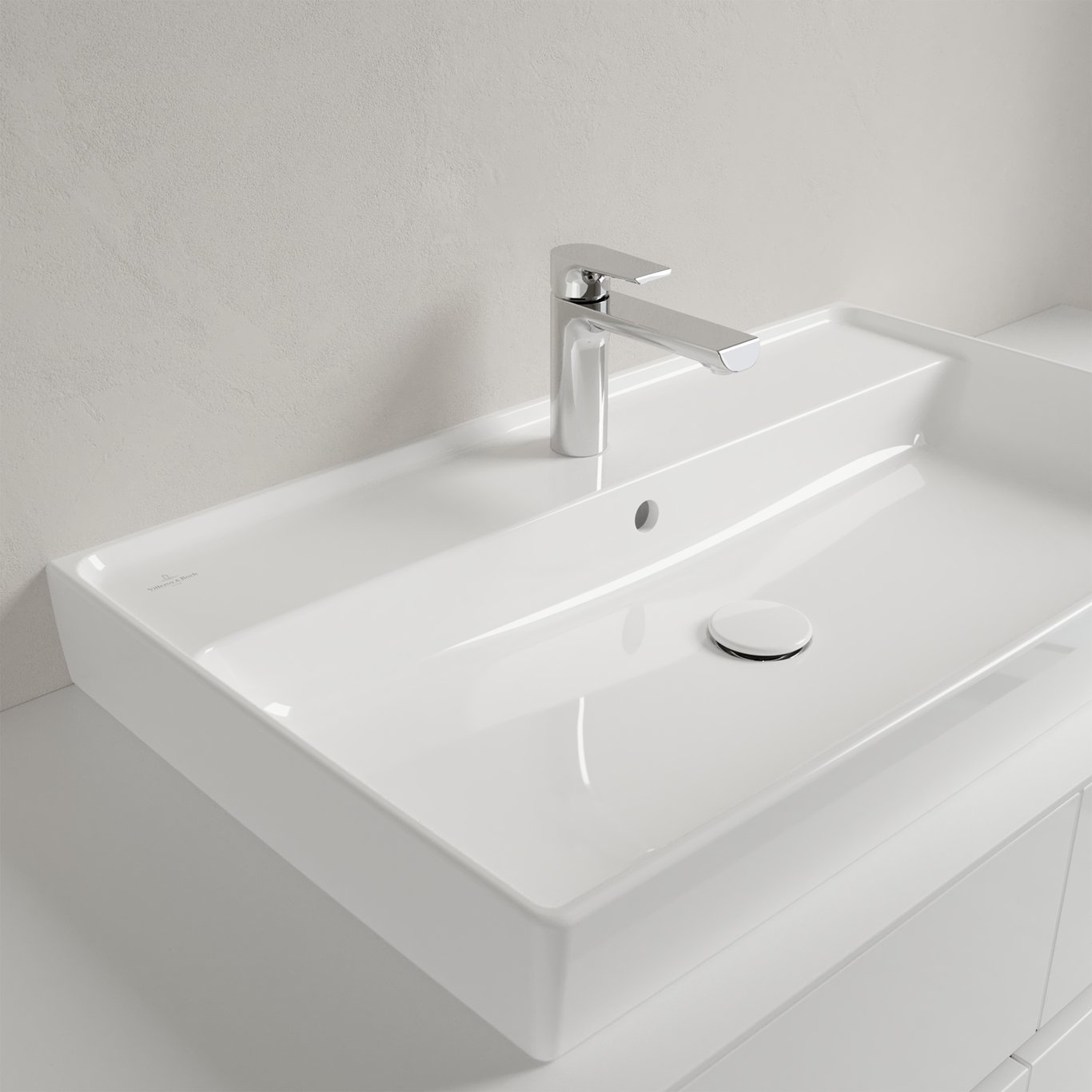 Denne servanten er svært fleksibel og kan monteres både på vegg, på et Villeroy & Boch servantskap og på andre baderomsløsninger.
