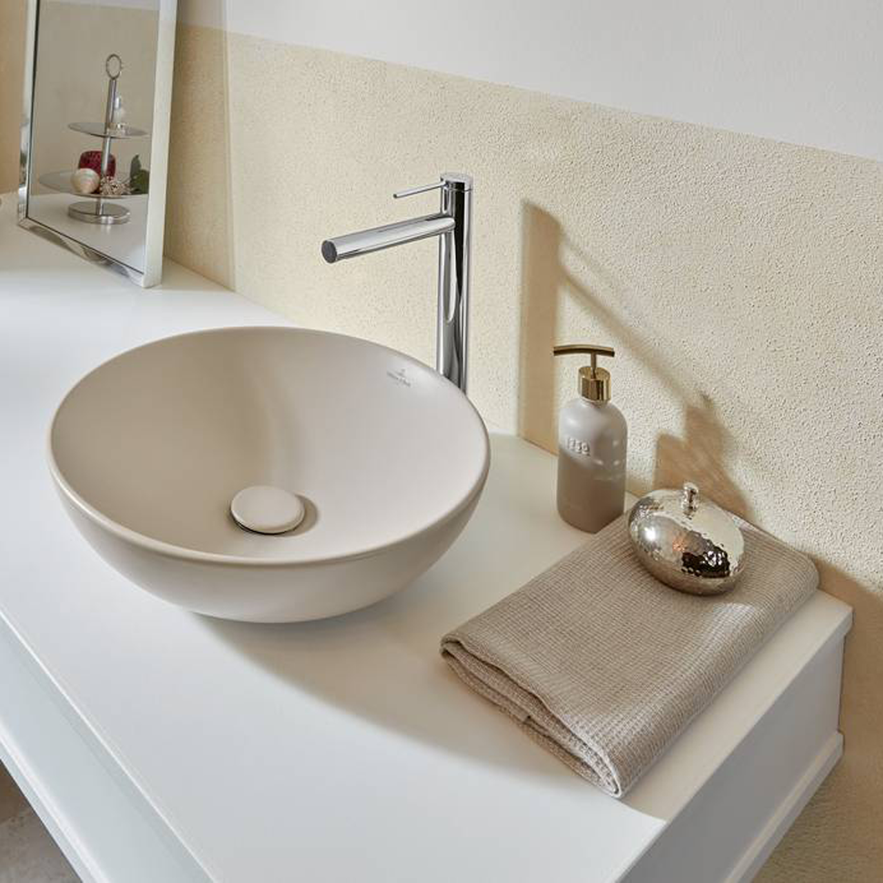 Denne servanten fra Villeroy & Bosch er beregnet for montering på servantplate eller benkeplate. Servanten er laget i en helt ny type keramisk materiale, som har alle egenskapene til høykvalitets keramikk og likevel er uvanlig sterkt.