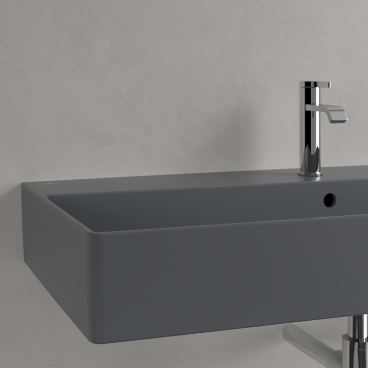 Memento 2.0 er en grå matt servant beregnet for veggmontering. Servanten kommer med hull til blandebatteri og er utført i Villeroy & Bochs TitanCeram-porselen, som tillater ekstra tynne servantvegger som fortsatt er både solide og lettstelte. Matte farger er moderne, og denne servantserien gir badet ditt et urbant utseende.