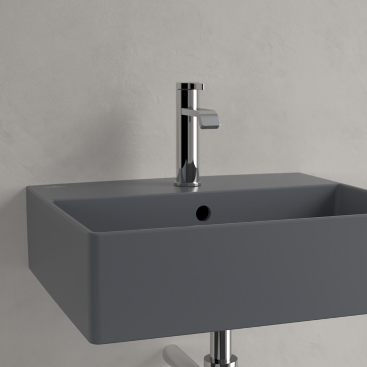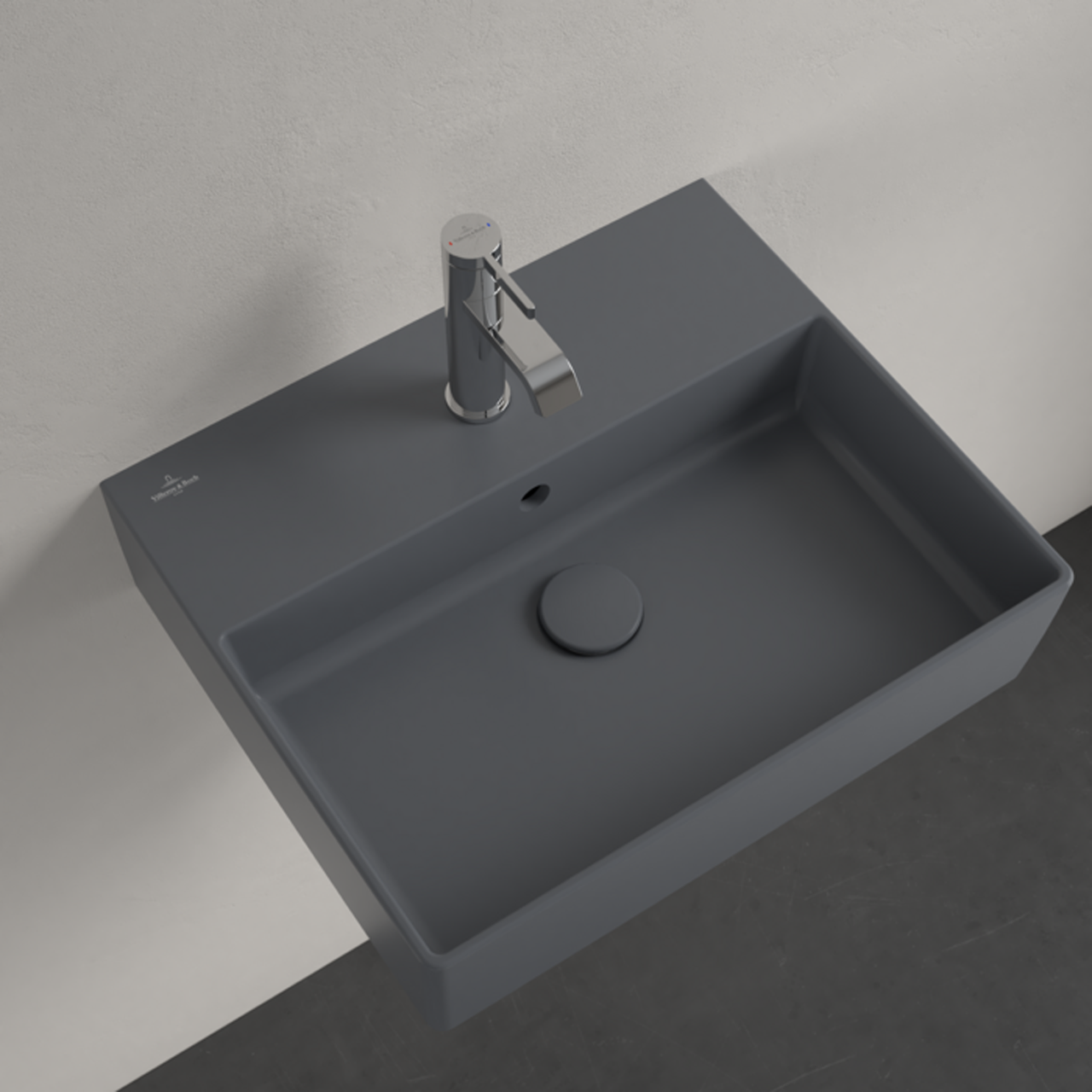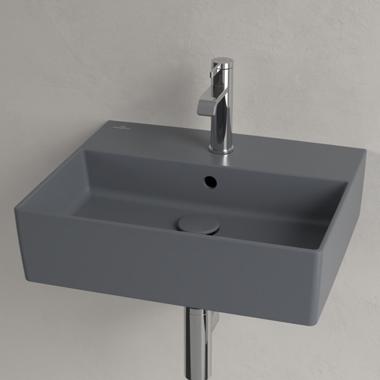 Memento 2.0 er en grå matt servant for veggmontering. Servanten kommer med hull til blandebatteri og er utført i Villeroy & Bochs TitanCeram-porselen, som tillater ekstra tynne servantvegger som fortsatt er både solide og lettstelte. Matte farger er moderne, og denne servantserien gir badet ditt et urbant utseende.