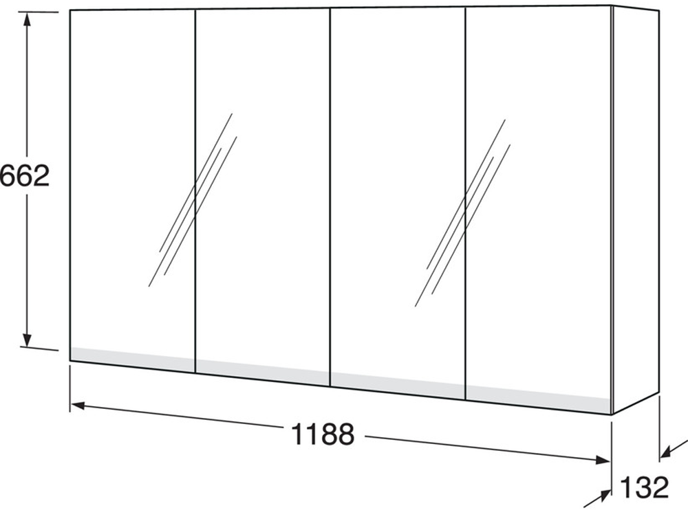 - Mål (B x D x H): 1188 x 132 x 662 mm