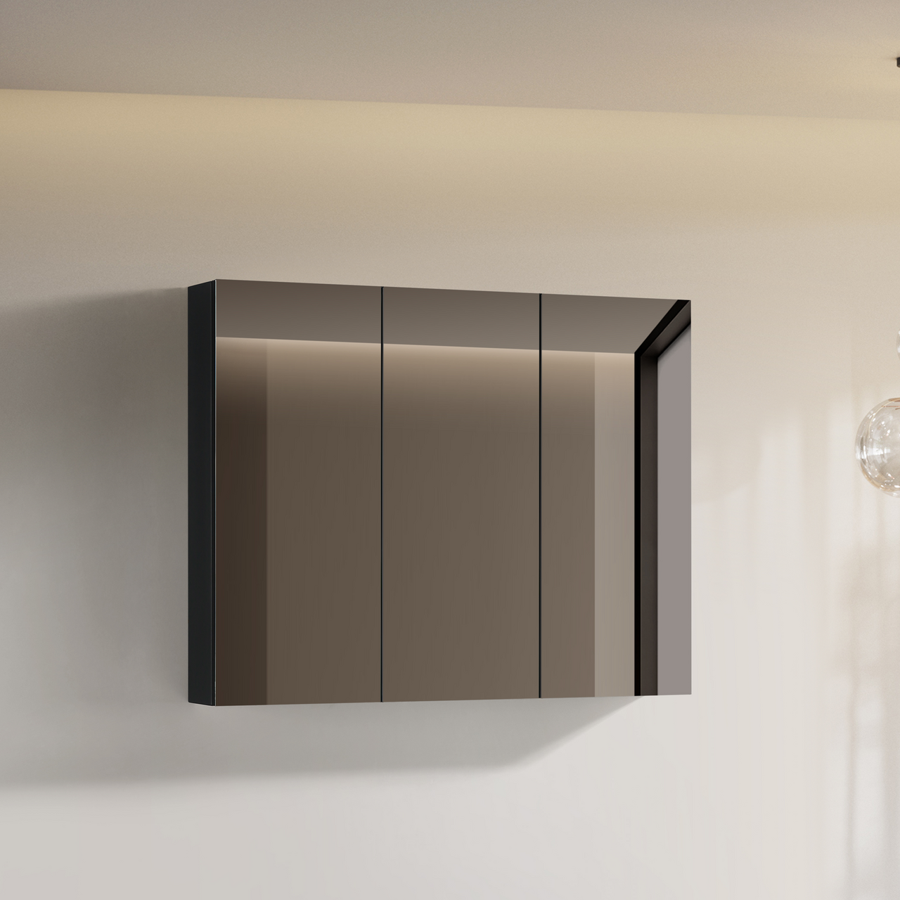 Ekstra oppbevaringFoliert speilskapSort matt overflate