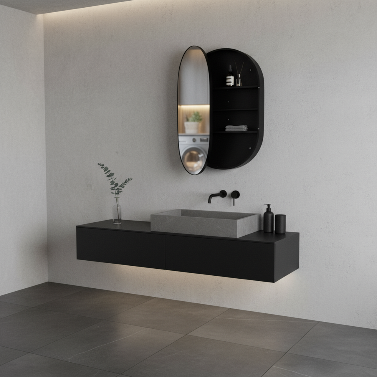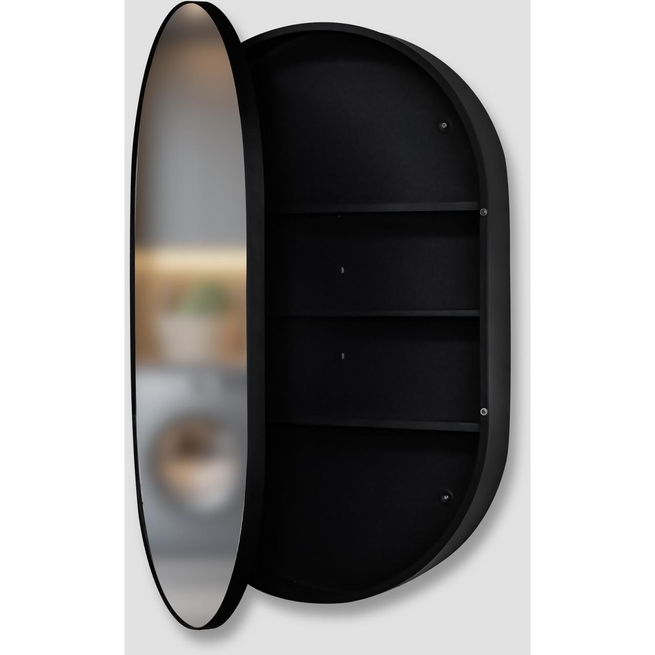 Lind steel speilskap oval sort