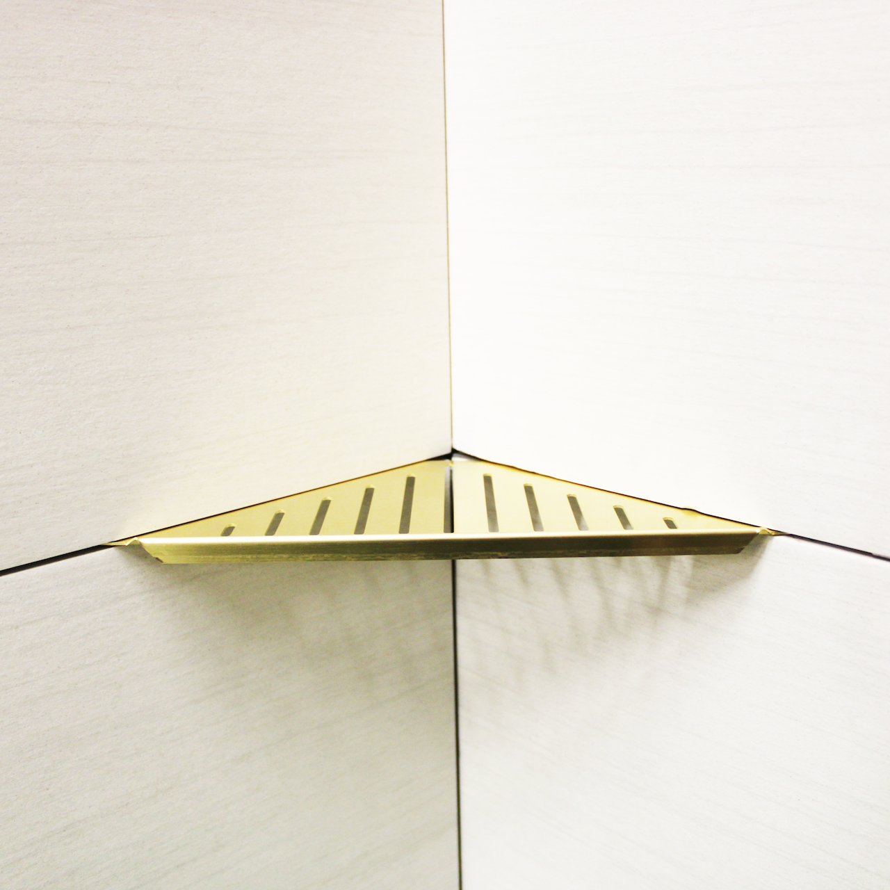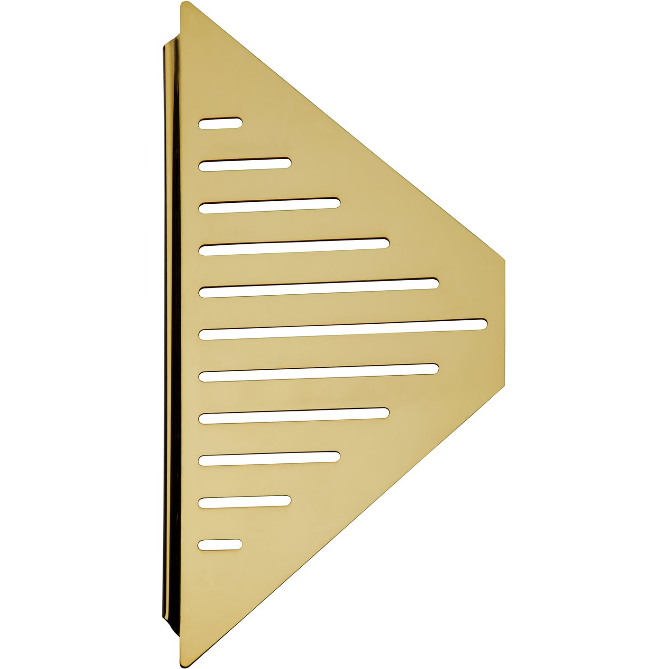 Denne praktiske hjørnehyllen kommer i polert messing, og vil gi et stilrent uttrykk i dusjen.