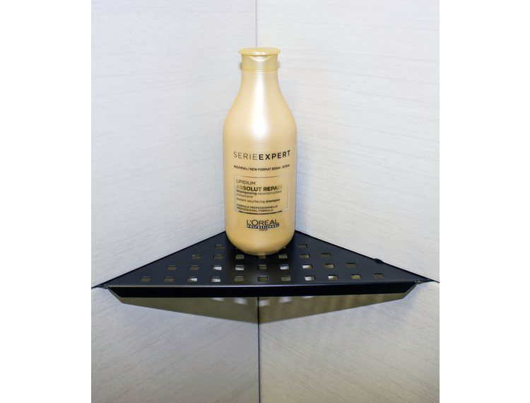 DESIGN HJØRNEHYLLE N°7 FOR DUSJ 1MM SORT MATT STÅL