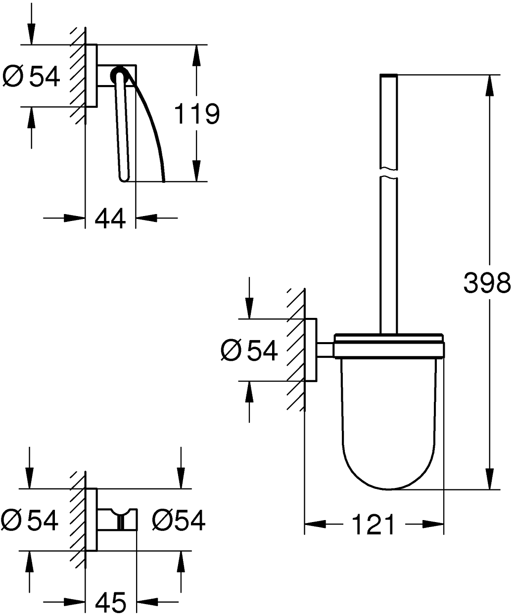 Dette tilbehørssettet fra Grohe vil skape en helhet på baderommet ditt, og består av en håndklekrok, en toalettpapirholder, og et toalettbørstesett.