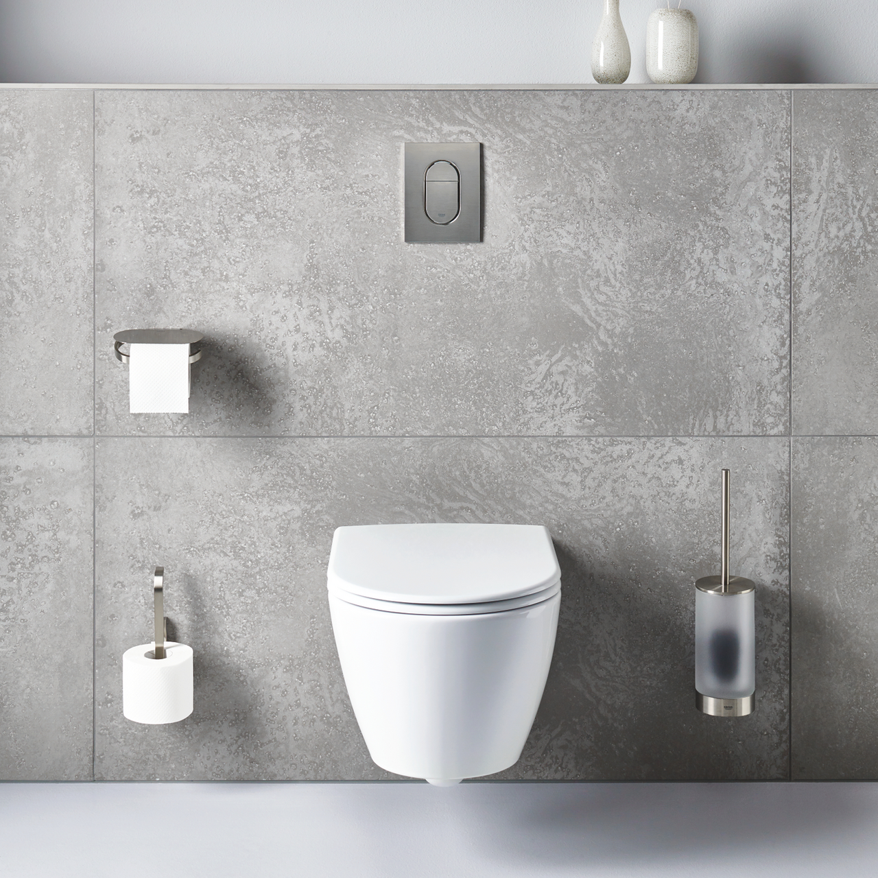Denne toalettrullholderen fra Grohe kommer med et moderne utseende og den slanke avrundende designet gir baderommet en stilren følelse.