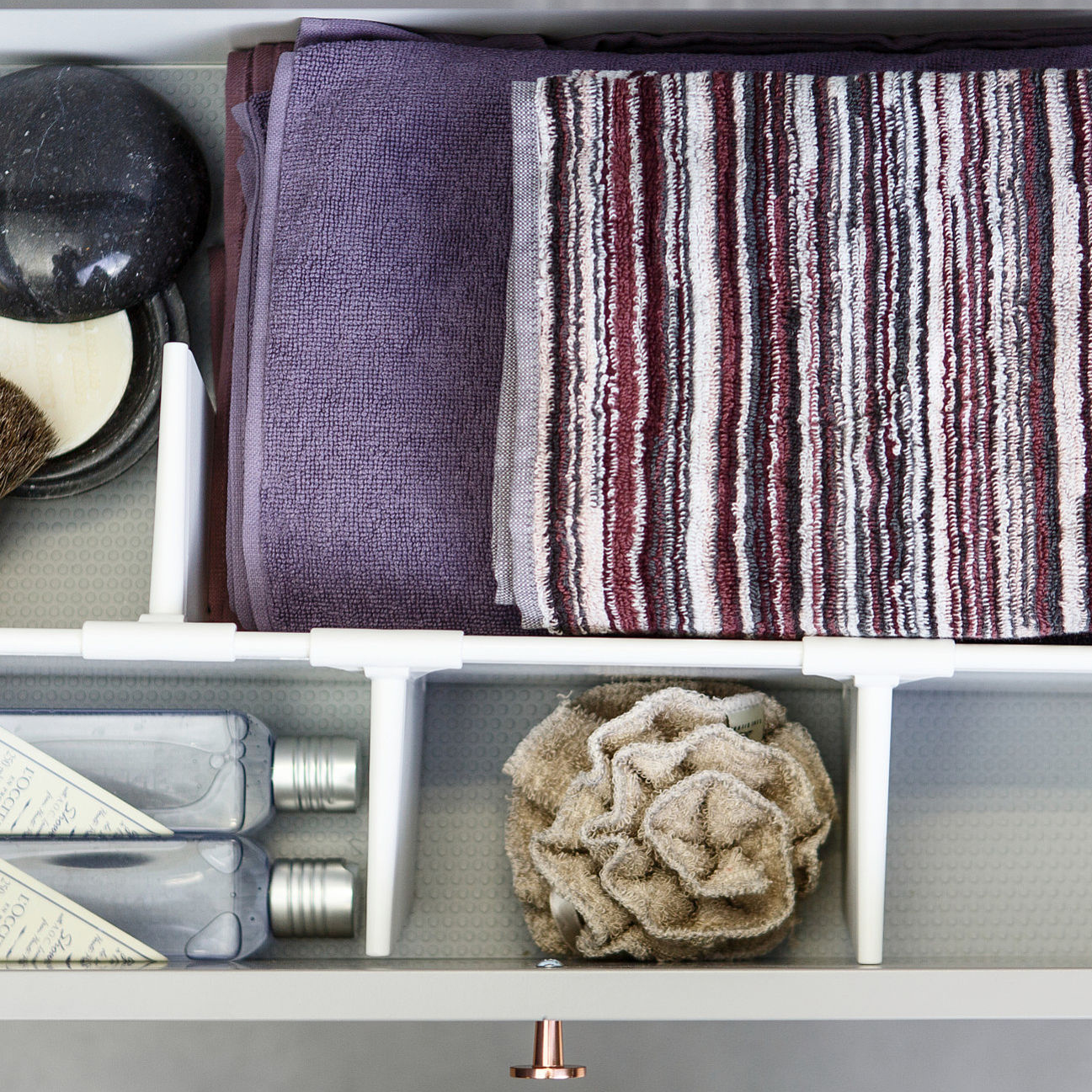 Praktisk justerbare skuffeinnsats i 60 cm til Gustavsberg Graphic møbler. Passer til øvre og nedre skuff.