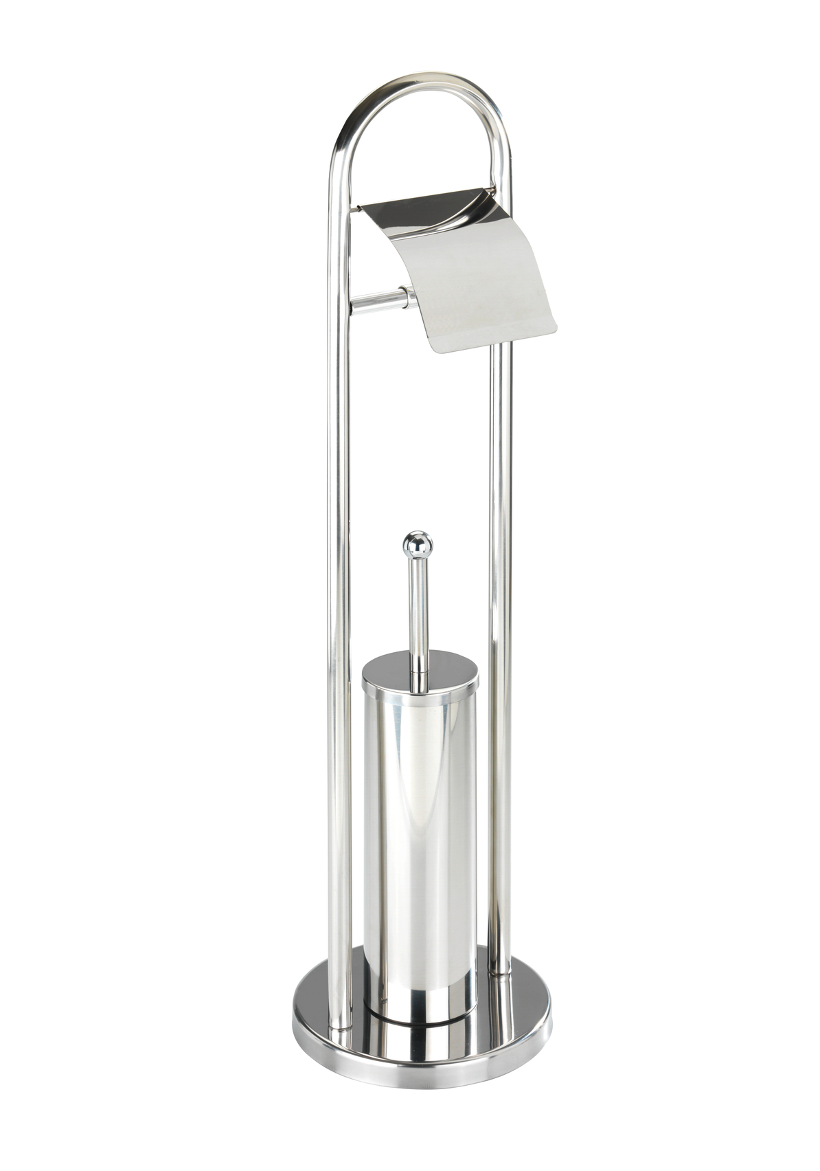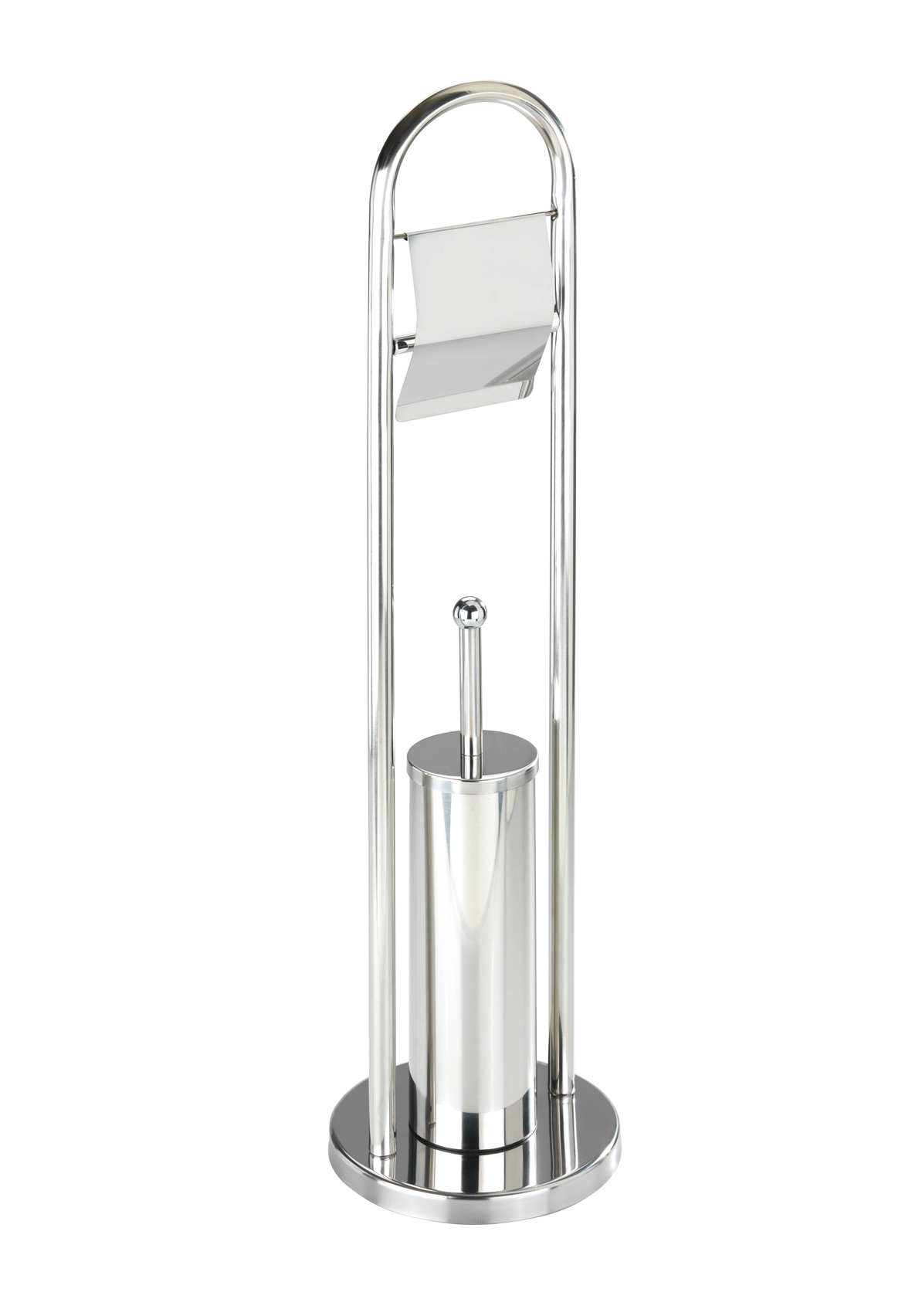 - Inkl. toalettbørste med et utvekslingsbart hvitt børstehode med en diameter på 7,5 cm og håndtak av rustfritt stål