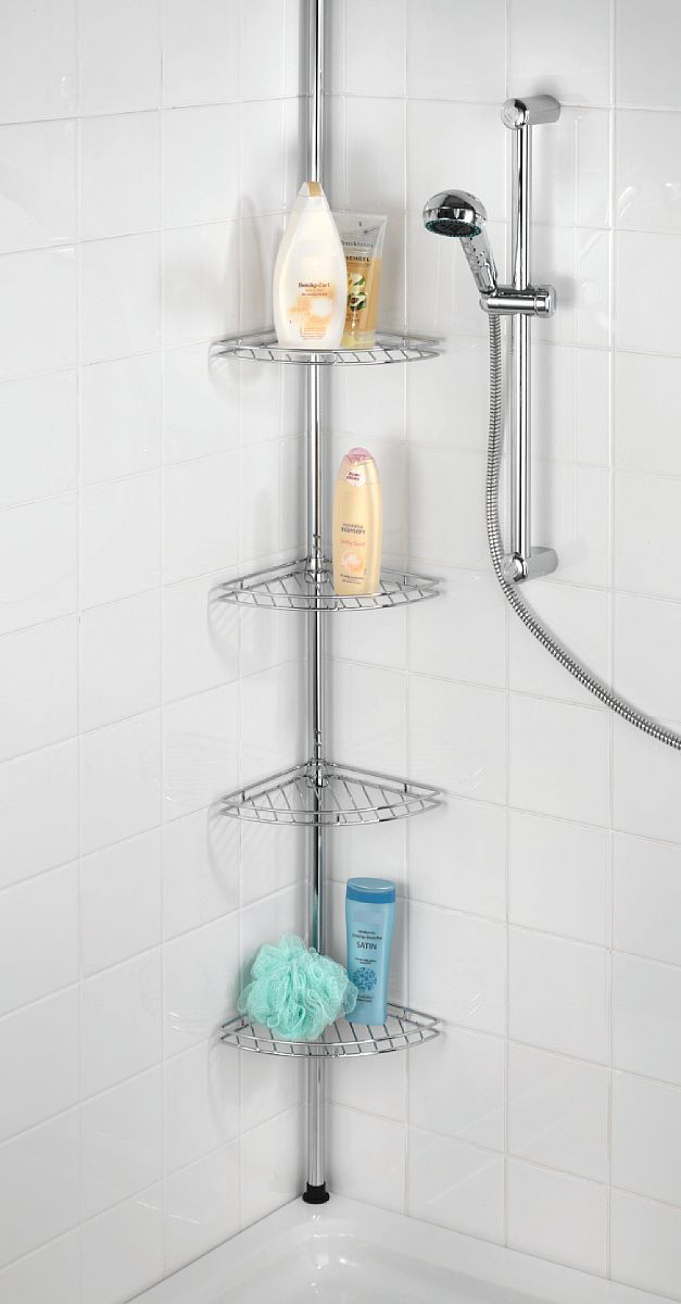 Inneholder 4 trådkurver og 1 teleskopstang. Utvides til maks. 275 cm. Kan brukes i dusjkabinetter, badekar-hjørner eller universelt på baderommet. Tilbyr god plass til shampoo, såpe og annet dusjtilbehør.
