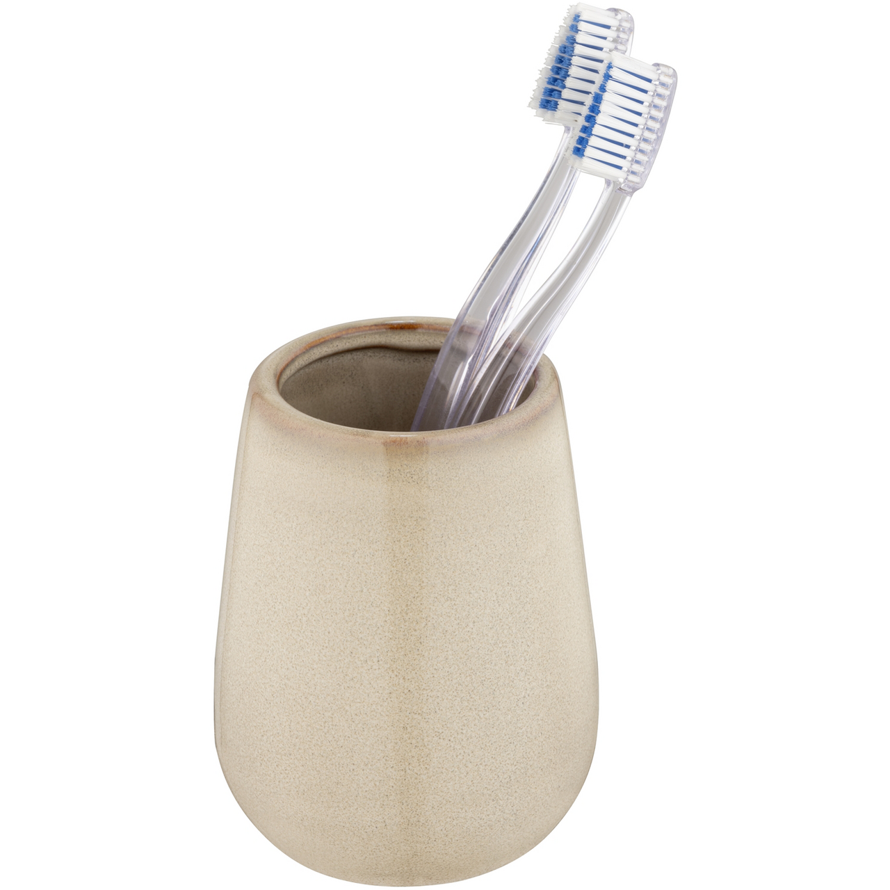 Dette tannglasset fra Wenko har en glatt overflate som bidrar til et tidløst preg på badet.