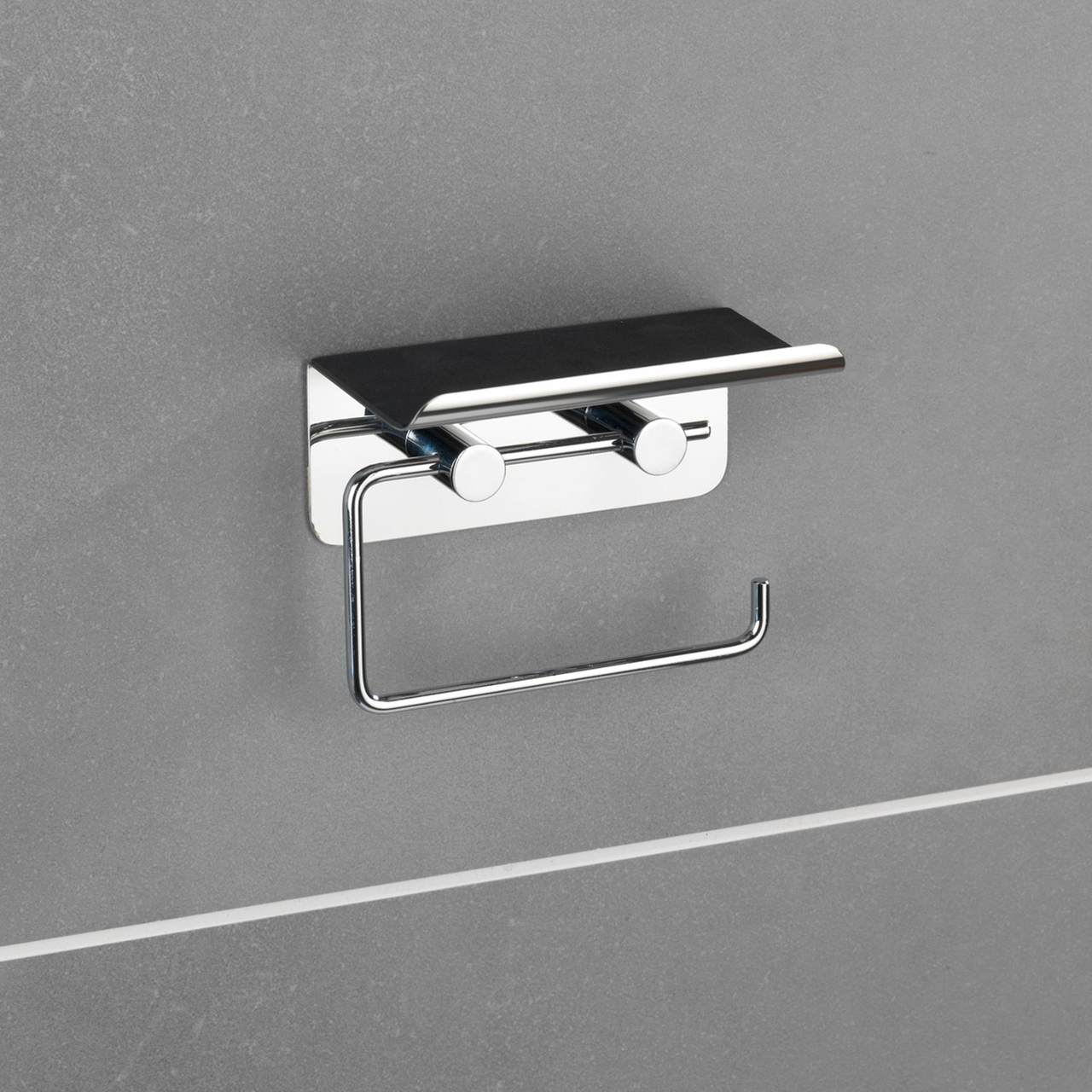 WENKO TOALETTPAPIRHOLDER MED HYLLE SELVKLEBENDE KROM