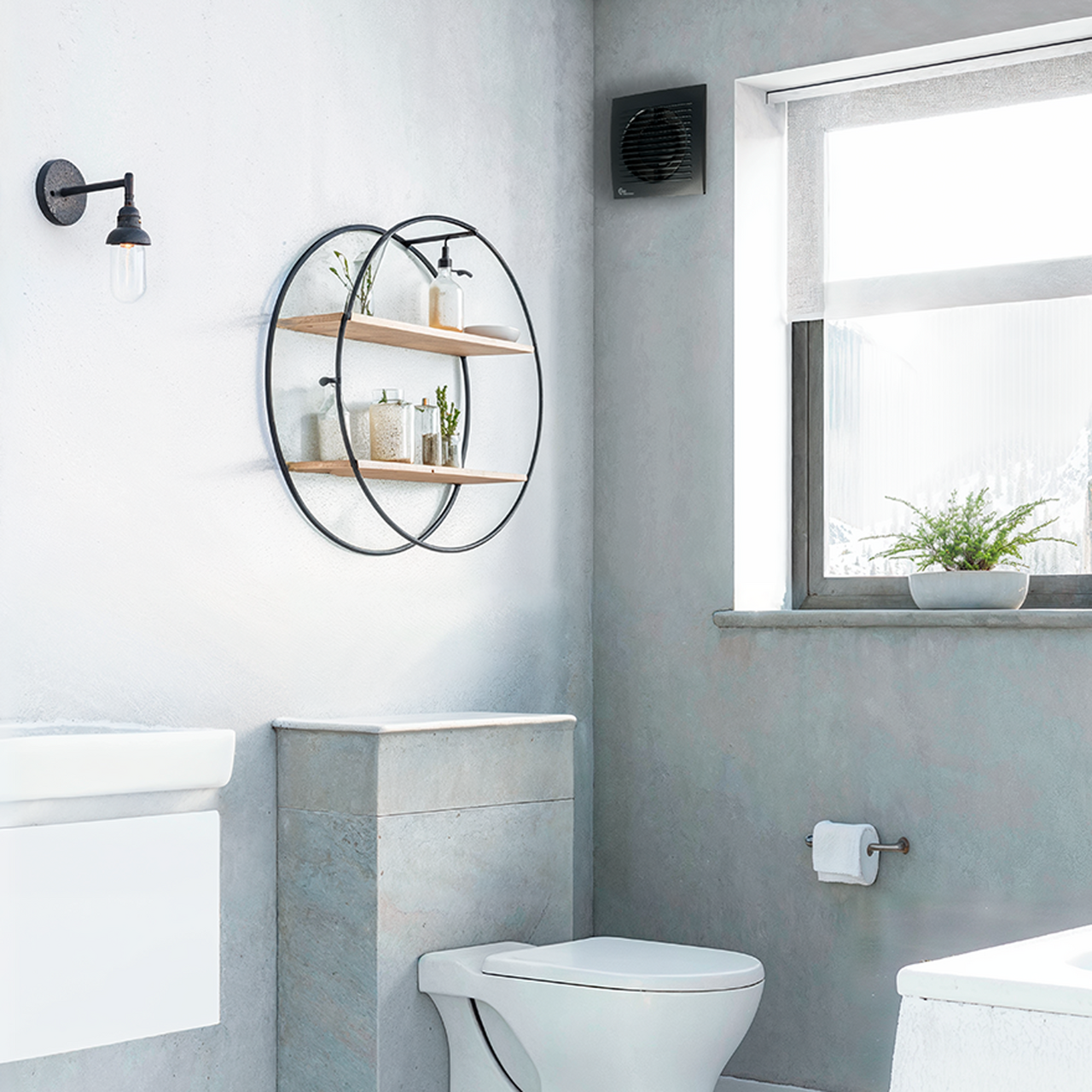 Viften betjenes manuelt, for eksempel via en lysbryter, og er et godt valg i nybygg eller ved renovering når man ønsker en pålitelig løsning uten automasjon.