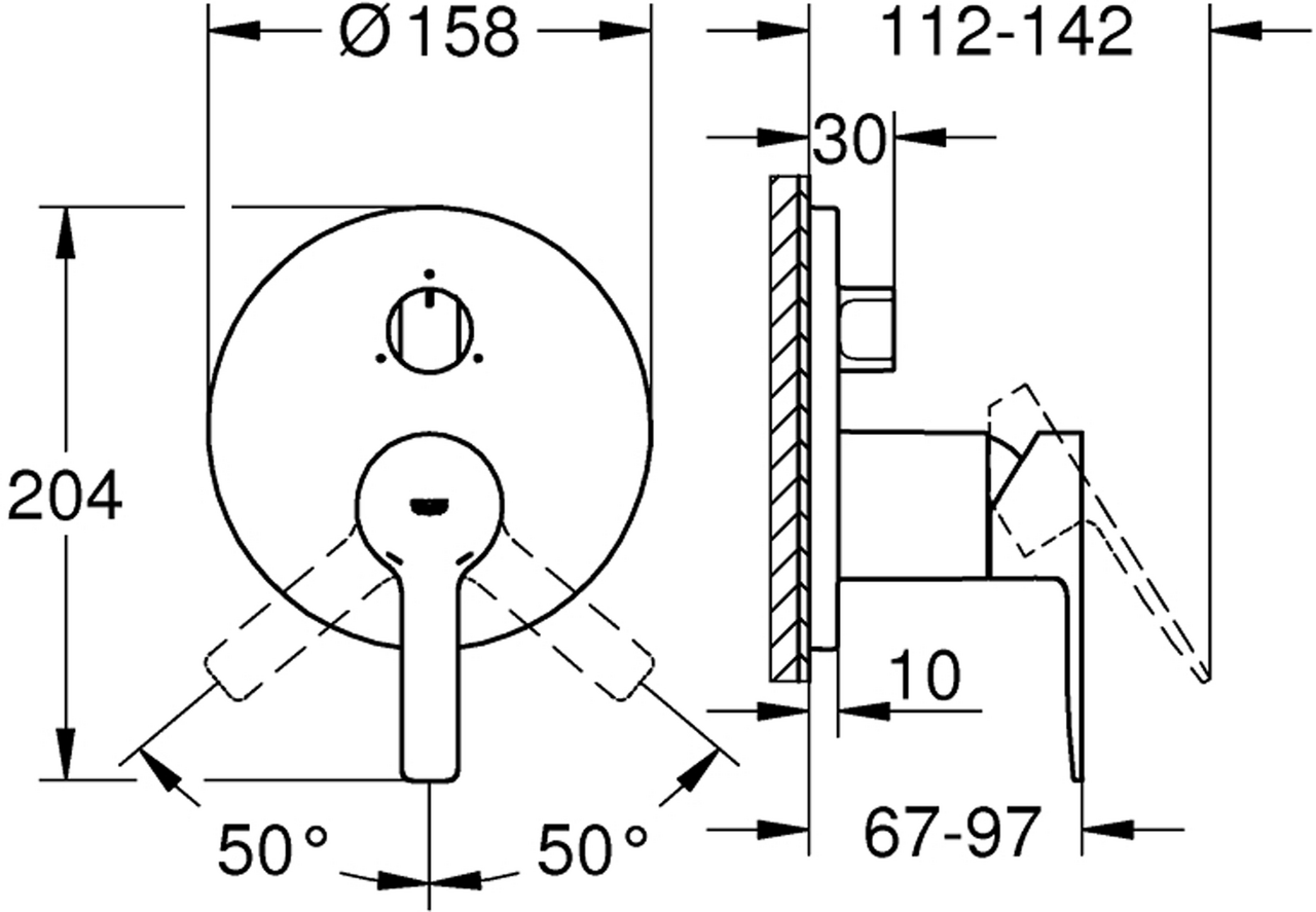 - Dekkskive med GROHE FastFixation (dekket rosett- og akseltetning, skjult feste)