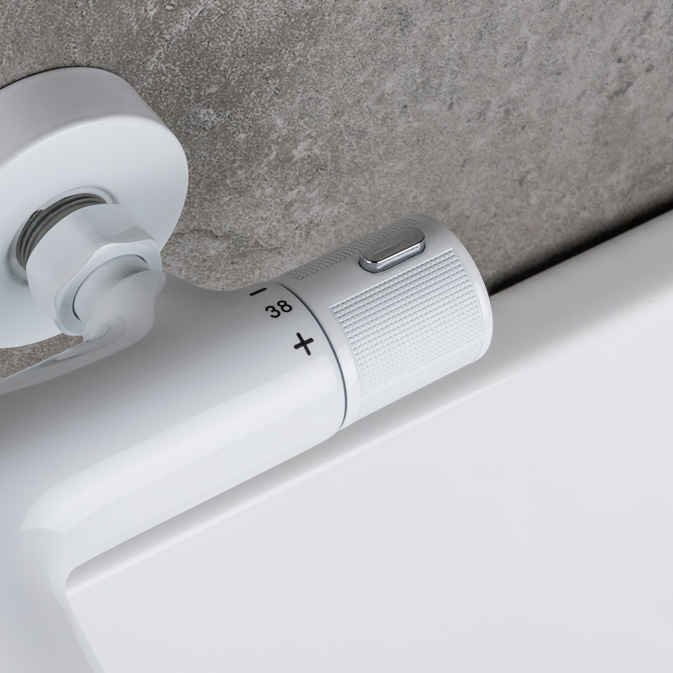 Stoke kar- og dusjtermostat fra Celeste har rene og minimalistiske linjer, med en hvit utførelse.