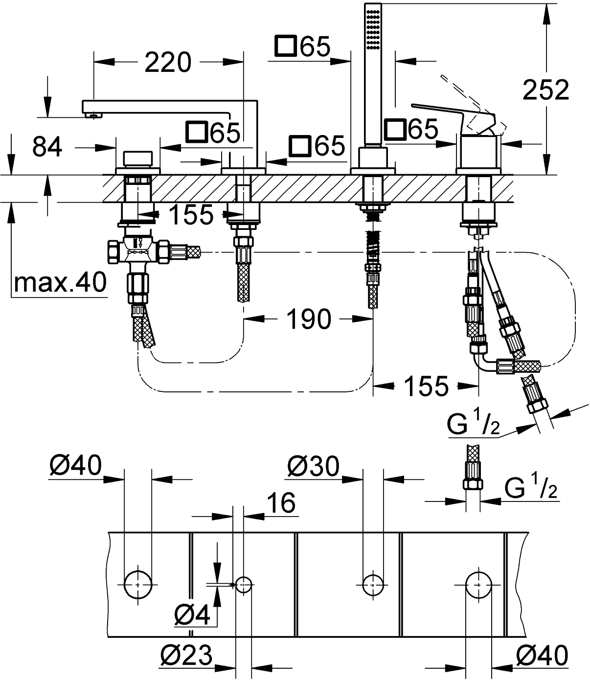 GROHE EUROCUBE 4-HULLS KAR- OG DUSJKOMBINASJON