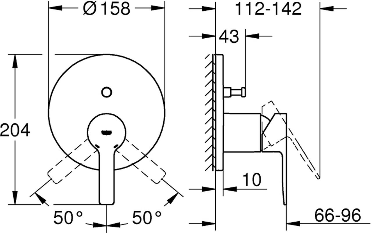 - Dekkskive med GROHE FastFixation (dekket rosett- og akseltetning, skjult feste)