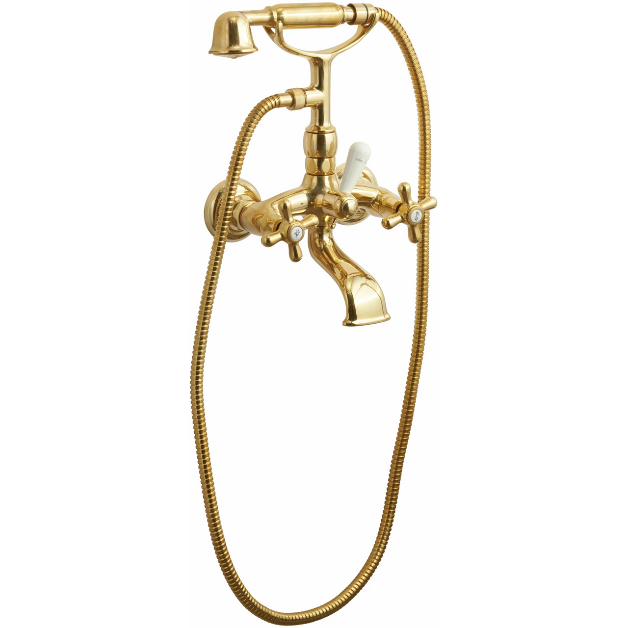 Badekararmaturet leveres med et 2-greps blandebatteri med patrontut, samt holder for hånddusj, dusjslange og hånddusj med veggholder.
