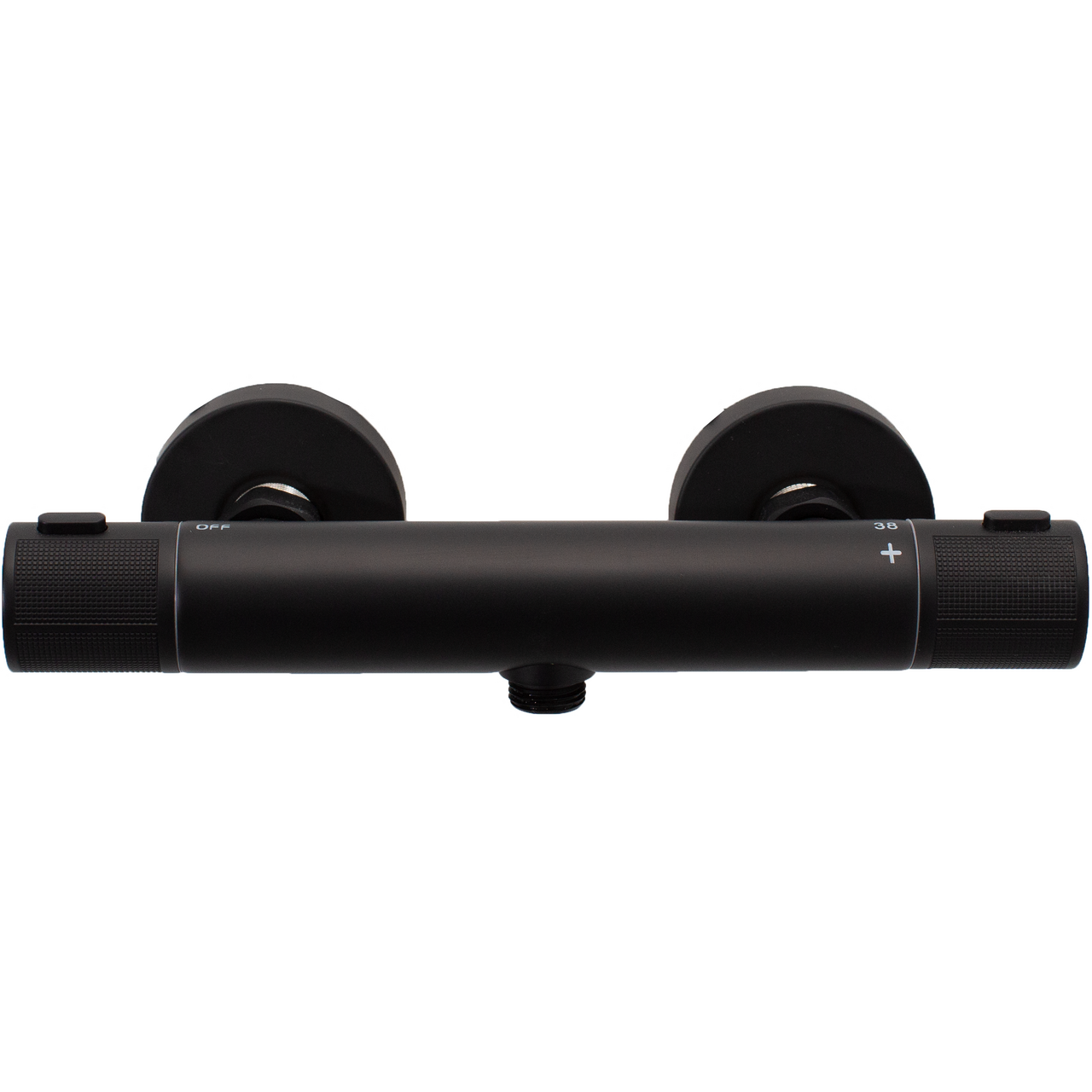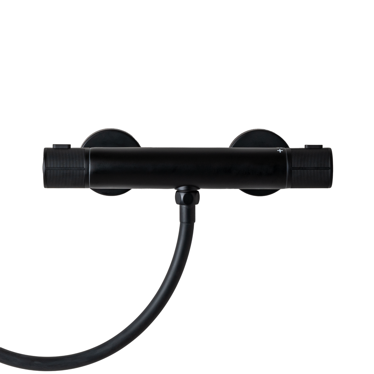 Stoke dusjtermostat fra Celeste har rene og minimalistiske linjer, med en sort utførelse.