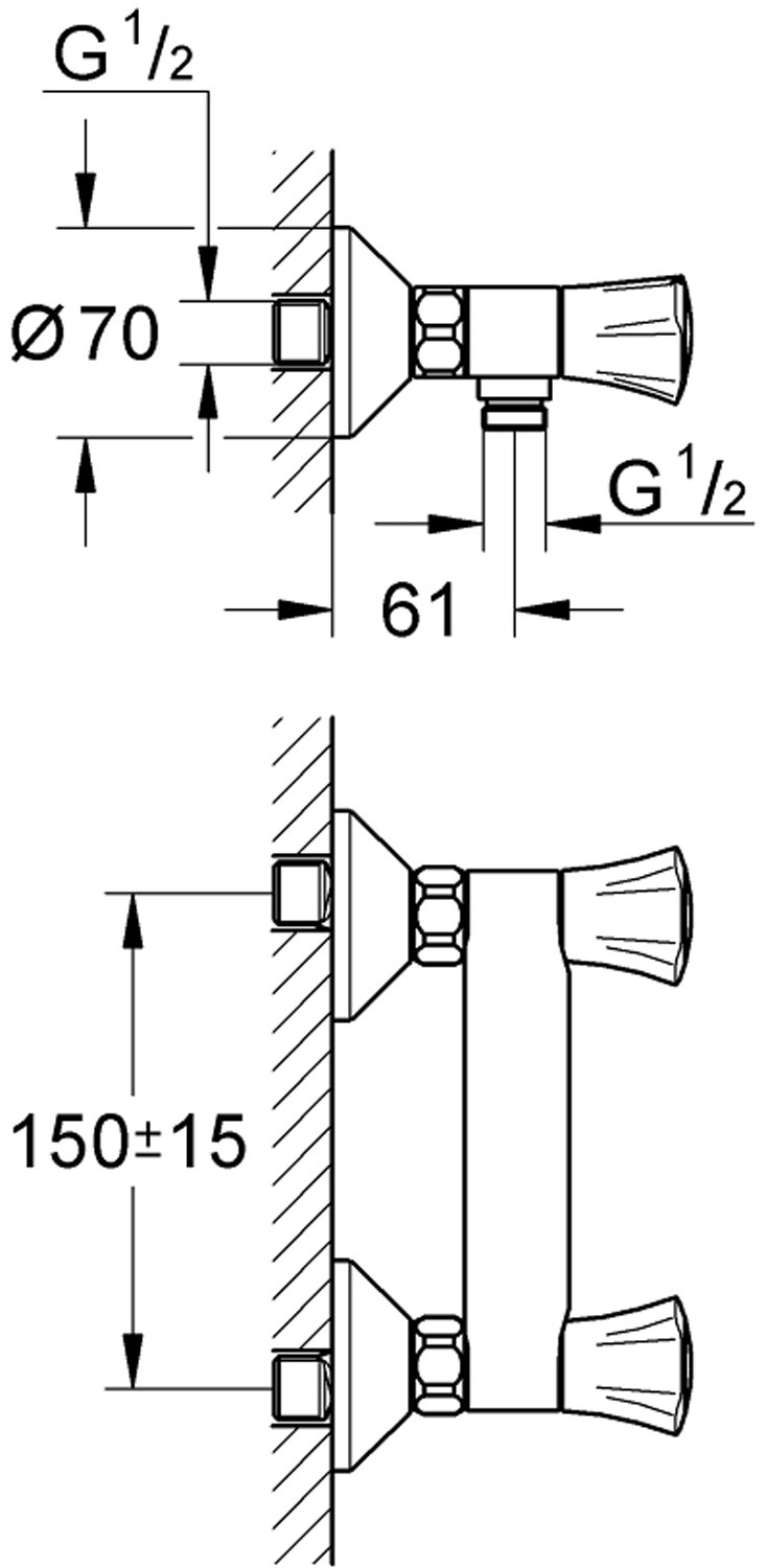 veggmontasjehendelvarmeisolerttil skrueLonglife overdeldusjtilslutning 1/2"S-tilslutningerGROHE StarLight krom overflateVann- og avløpsinstallasjoner må installeres av rørlegger.