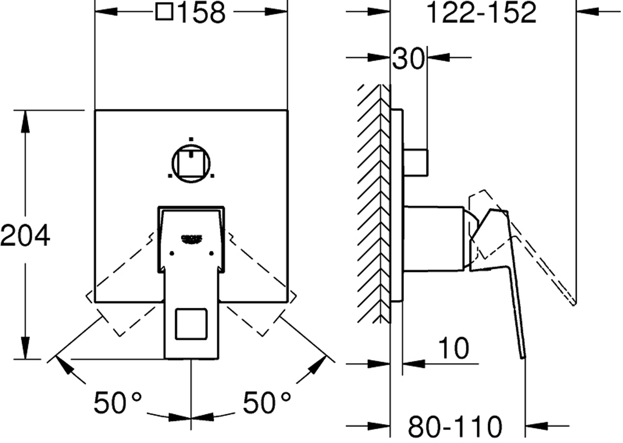 - Dekkskive med GROHE FastFixation (dekket rosett- og akseltetning, skjult feste)