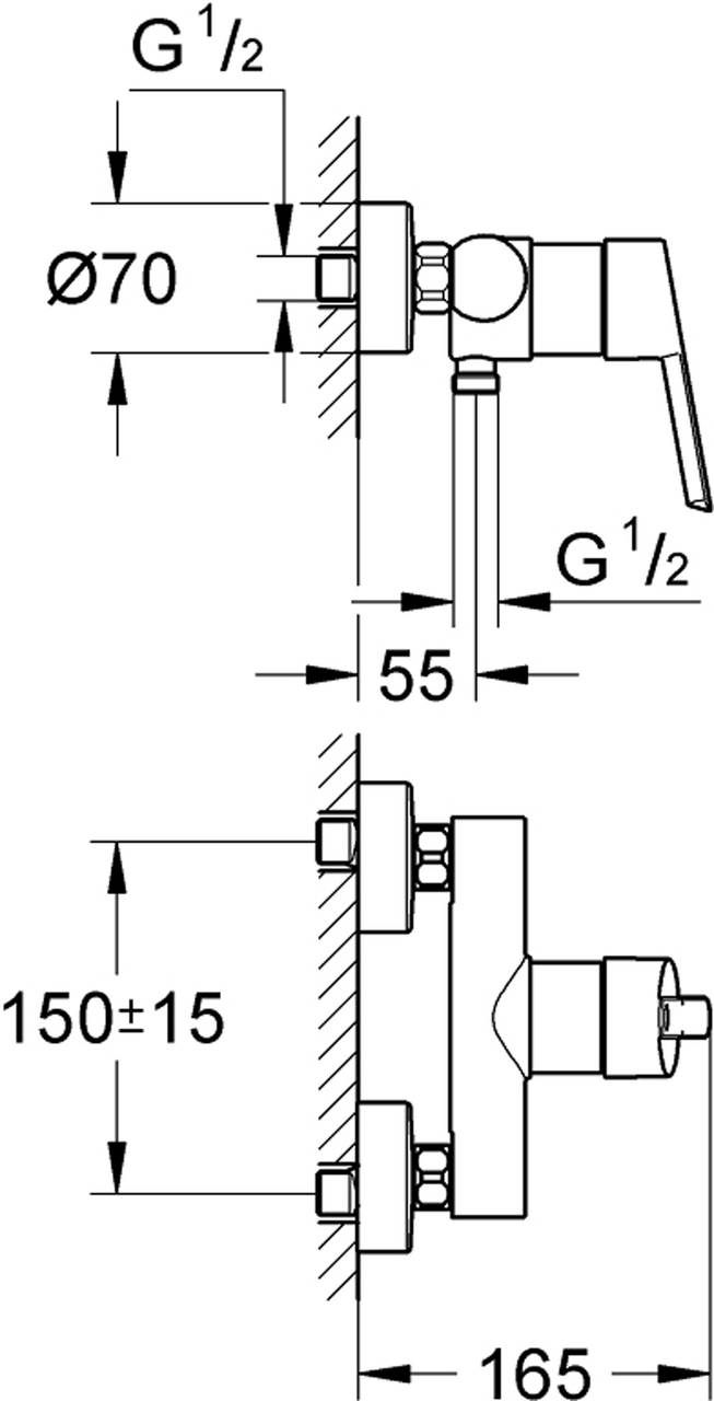 veggmontasjemetallhendelGROHE SilkMove 46 mm keramisk patronvariable justerbar volumbegrenserGROHE Long-Life overflatedusjutgang 1/2" med integrert tilbakeslagsventilS-tilslutningermed tilbakeslagsventilveggrosett av metalltemperatursperre kan brukes (46 375)Vann- og avløpsinstallasjoner må installeres av rørlegger.