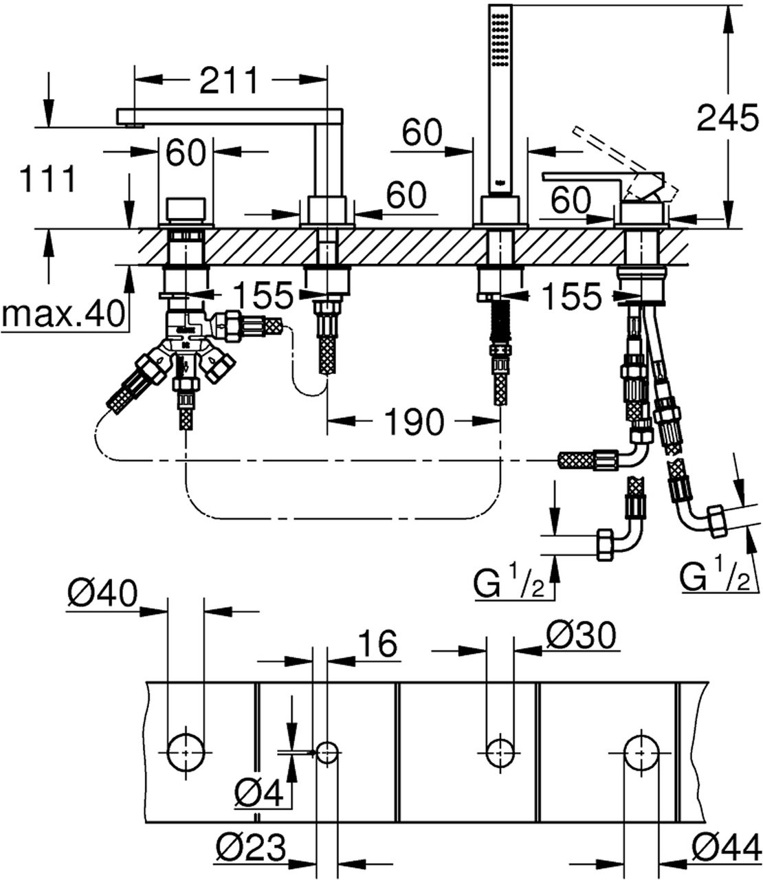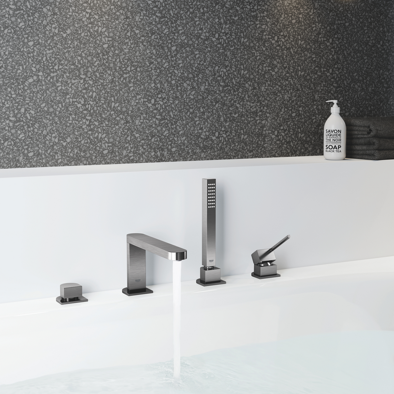 GROHE PLUS 4-HULLS KAR- OG DUSJBATTERI BØRSTET HARD GRAFITT