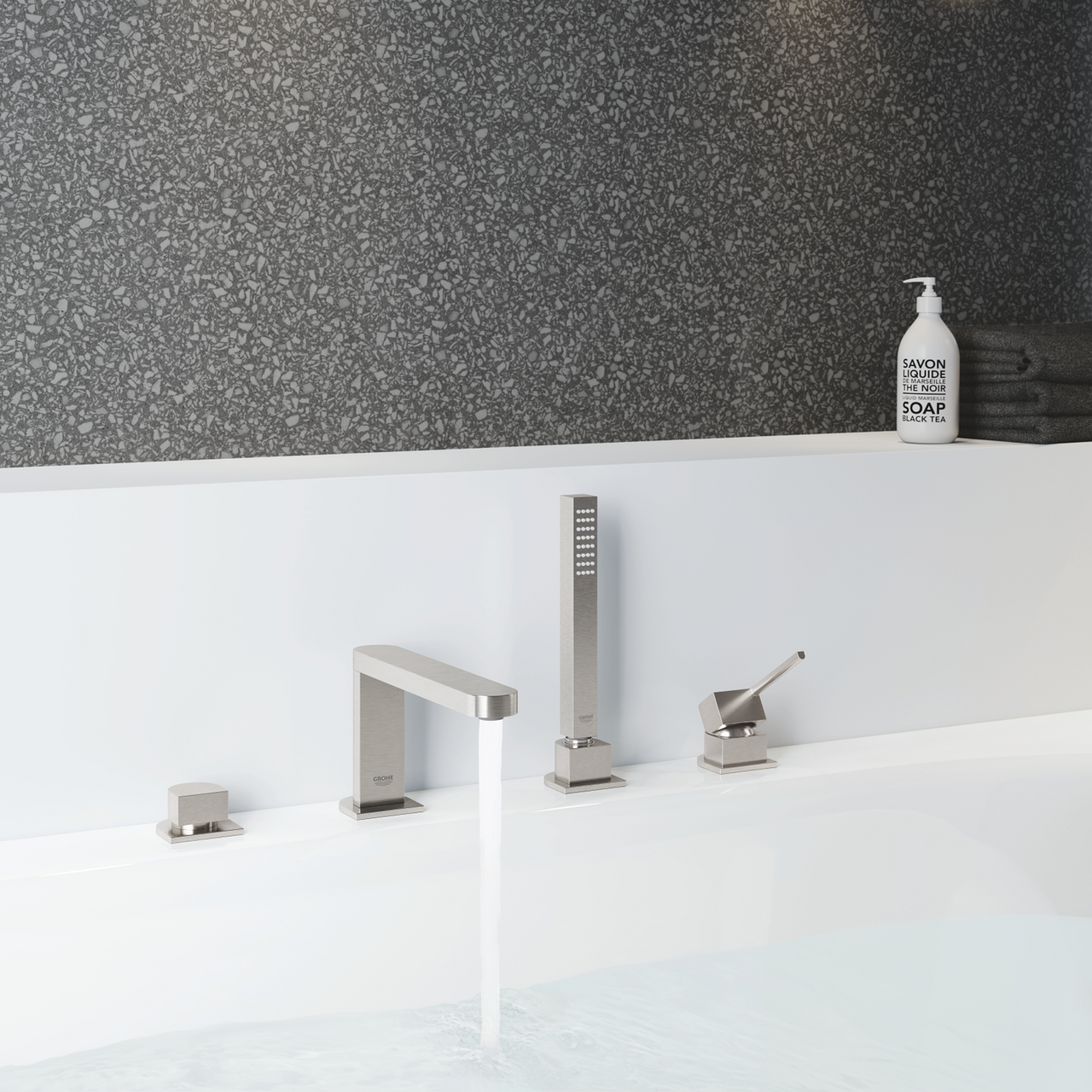 Grohe plus 4-hulls kar- og dusjbatteri supersteel