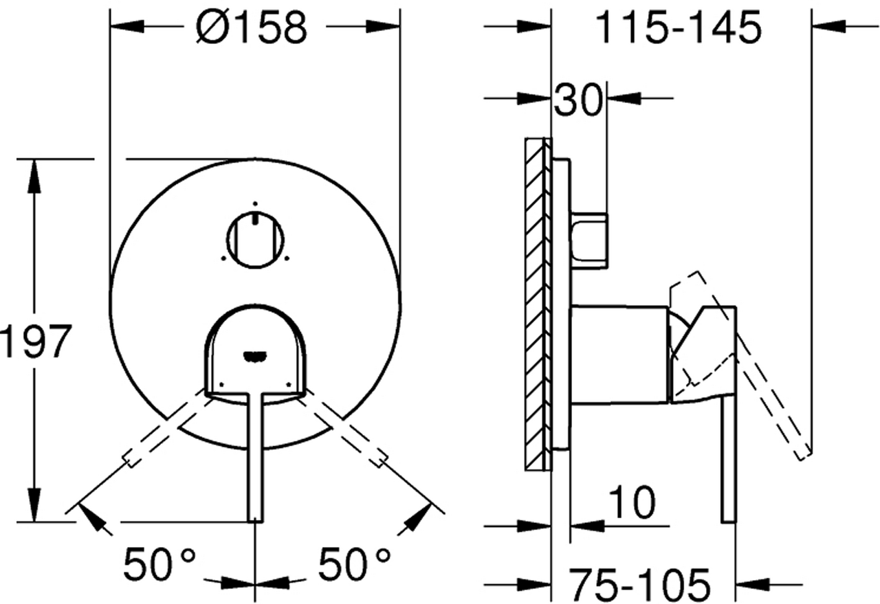 tilhørende innvendig del:GROHE Rapido SmartBox 35 600/35 604GROHE SilkMove 46 mm keramisk patronGROHE Long-Life-overflatedekkskive med GROHE FastFixation(dekket rosett- og akseltetning, skjult feste)metall rosett, med tilbakevirkende kraft 6° justerbarmetallhendel3-veis omskifterflyte ytelse:utløp A = 27 l/minutløp B = 27 l/minutløp C = 27 l/minuten rørsettVann- og avløpsinstallasjoner må installeres av rørlegger.