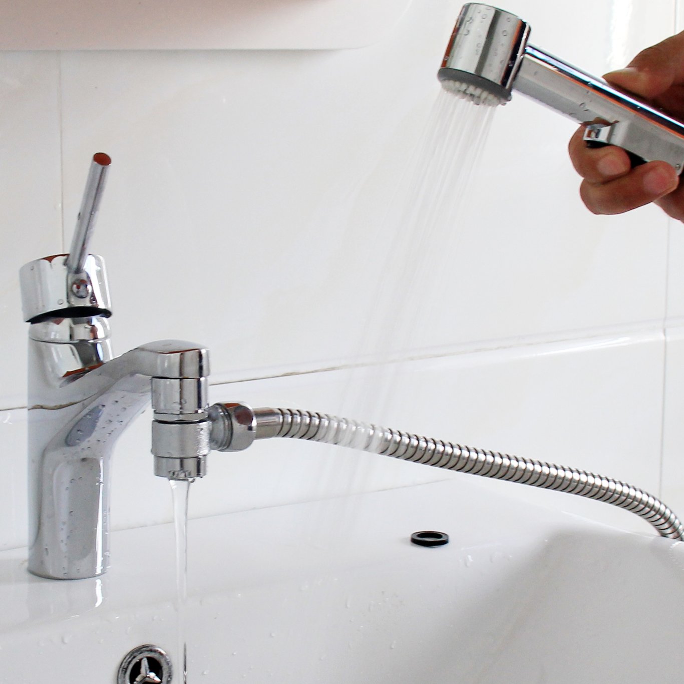 Med slange & veggholderForkommet overflateOvergang for de fleste standardkoblinger