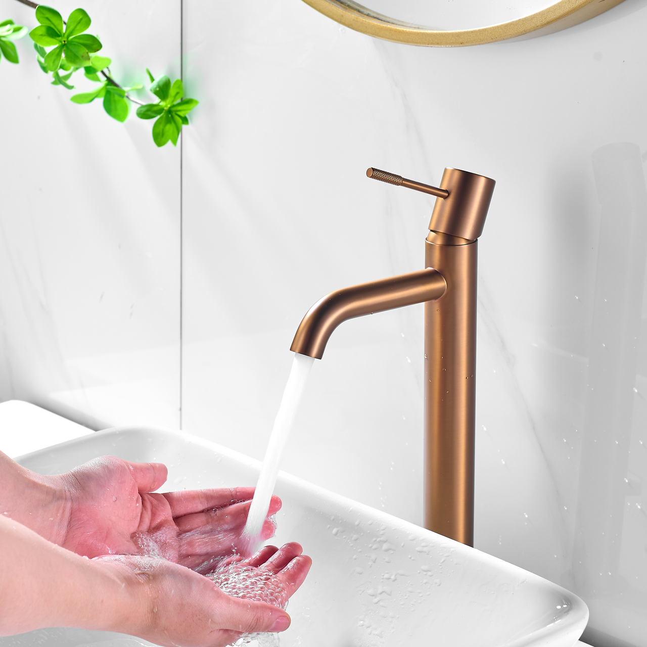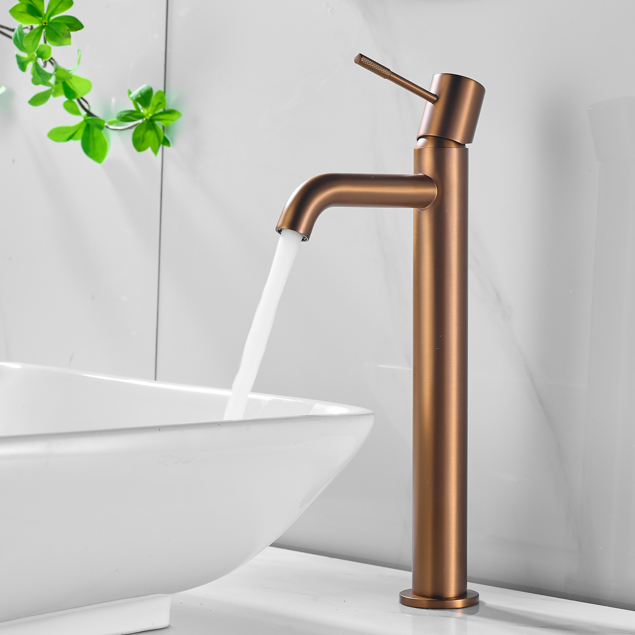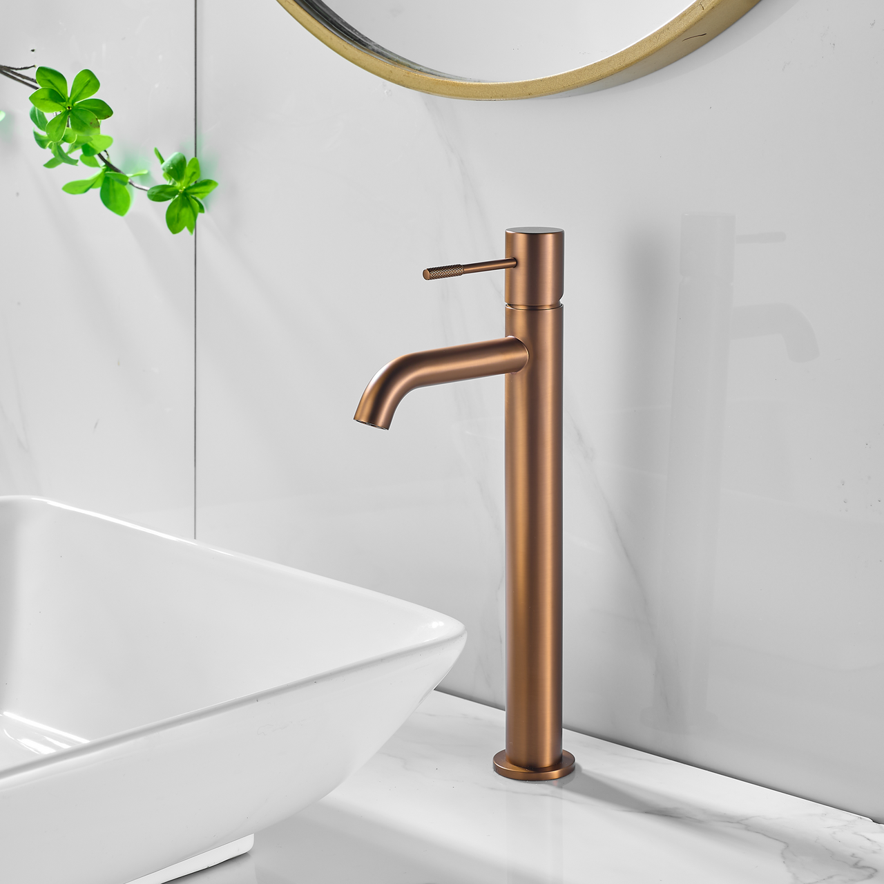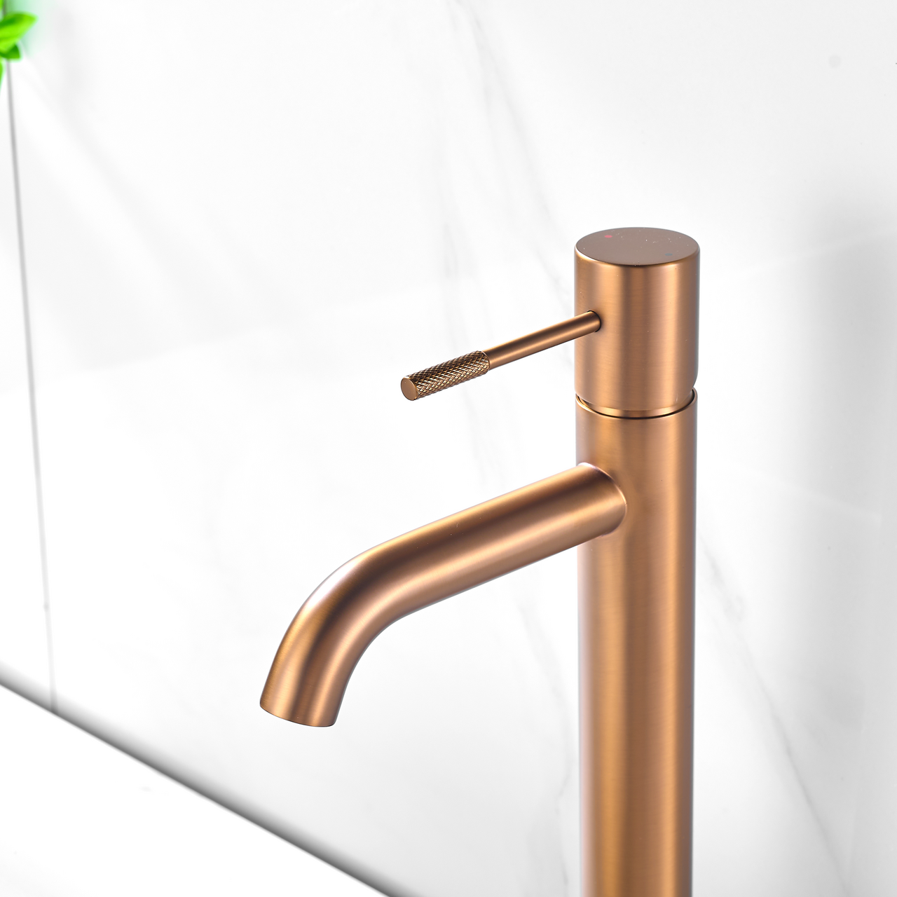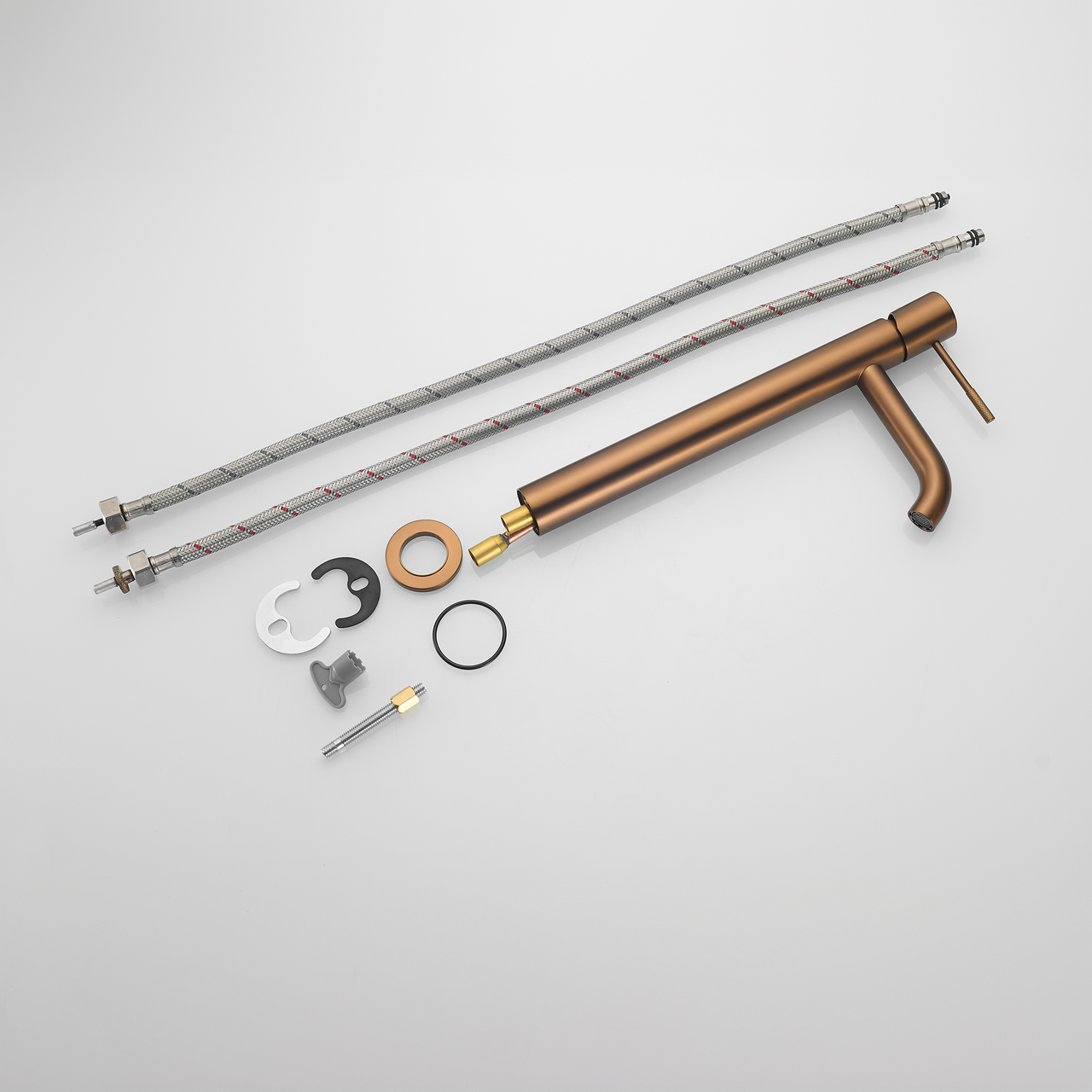 Den børstede kobberfargen gir en lun og eksklusiv stil som passer like godt i klassiske som i rustikke baderom. Servantbatteriet leveres med fleksible trykkslanger, som sikrer enkel og fleksibel montering.