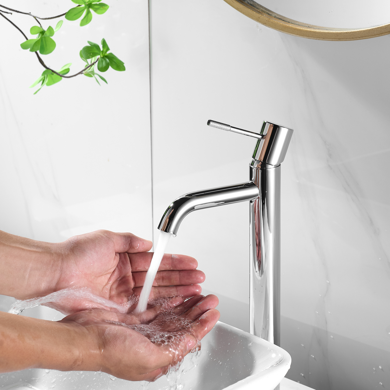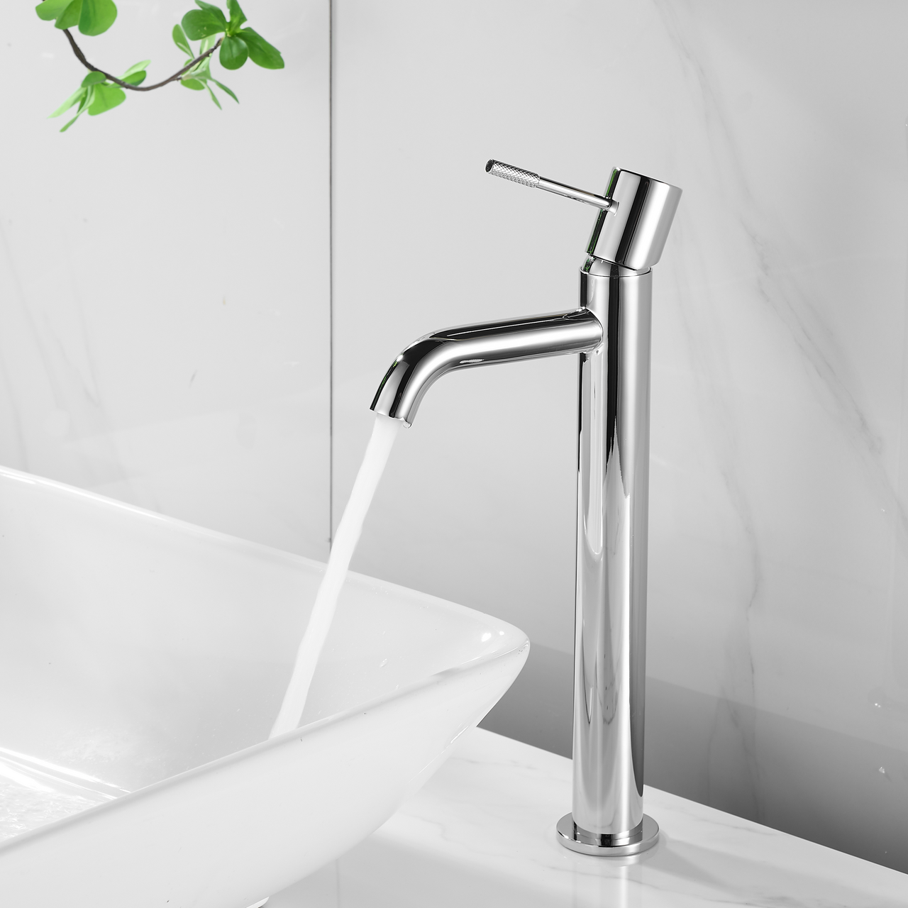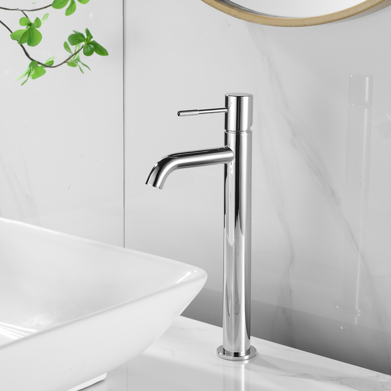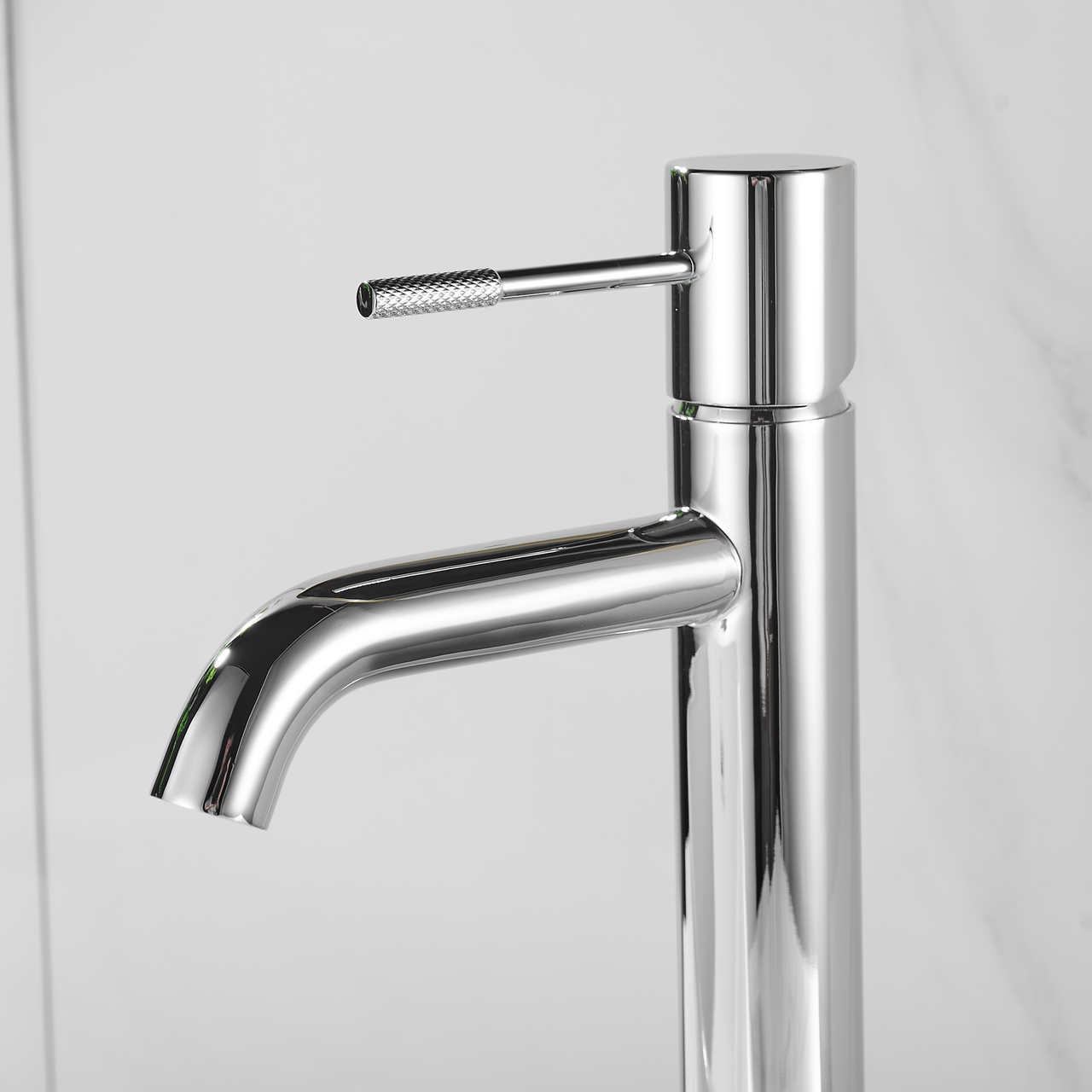 Dette servantbatteriet fra Celeste har et minimalistisk og stilrent design med myke, buede linjer. Den høye modellen er perfekt egnet til bruk med frittstående servanter.