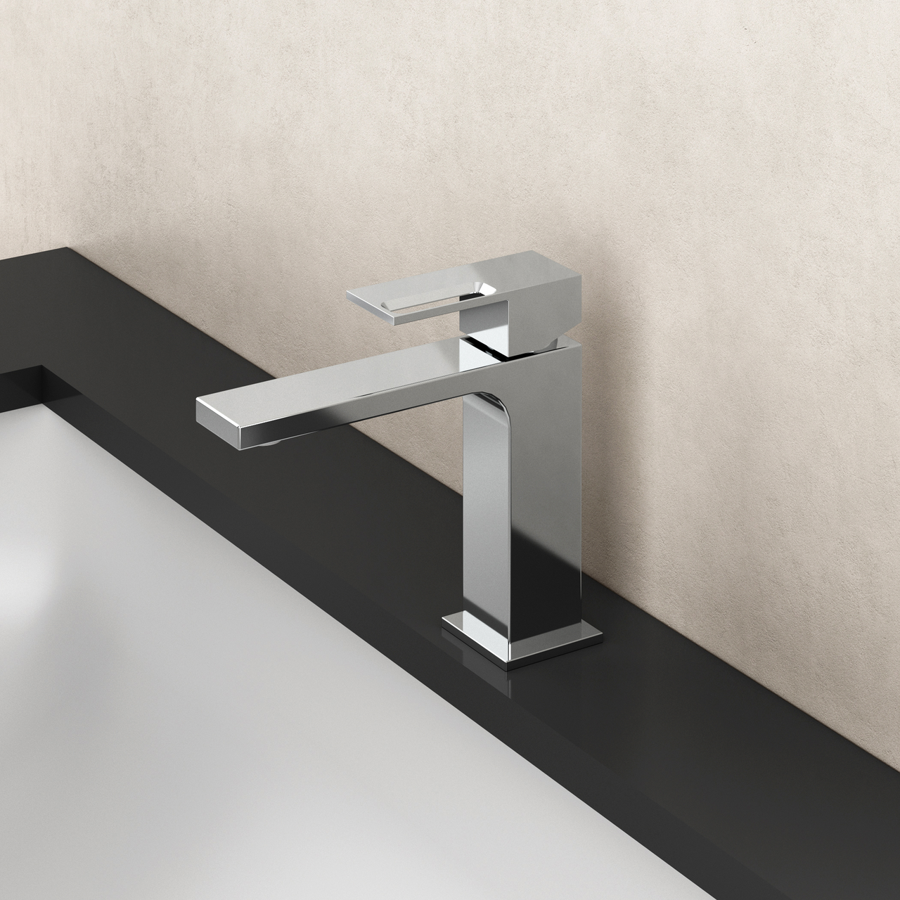 De skarpe, firkantede linjene gir baderommet et luksuriøst preg, uansett stil og innredning.