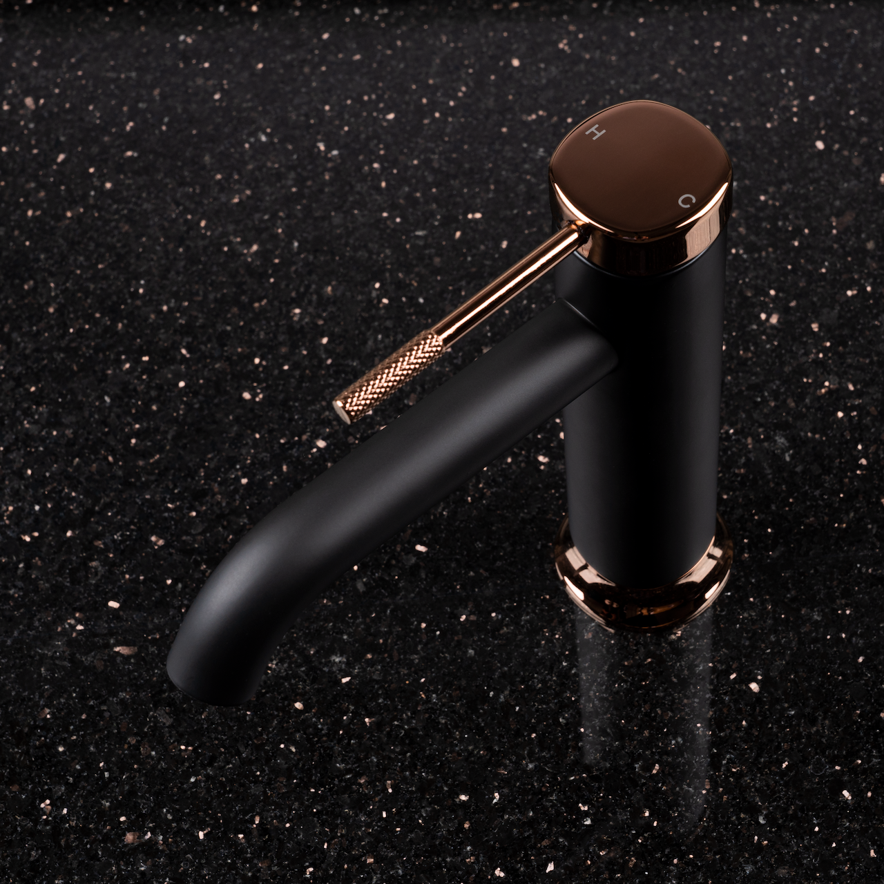 Celeste Wakefild er et flott og moderne servantbatteri med et minimalistisk design i matt sort utførelse med kobberdetaljer.