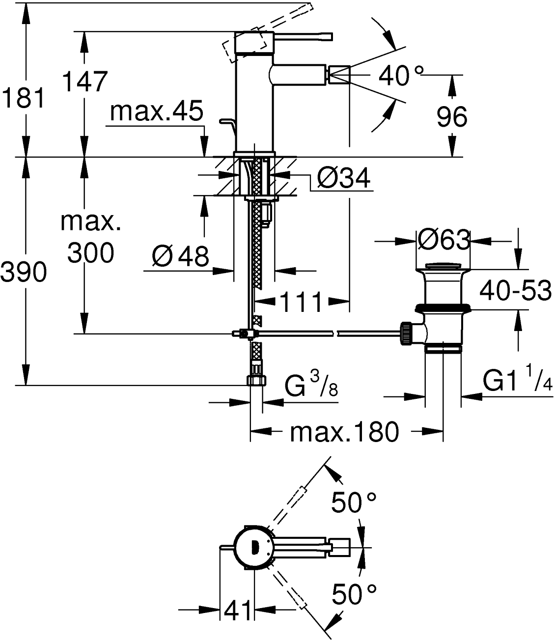 Grohe essence new bidéarmatur small m/oppløftsventil