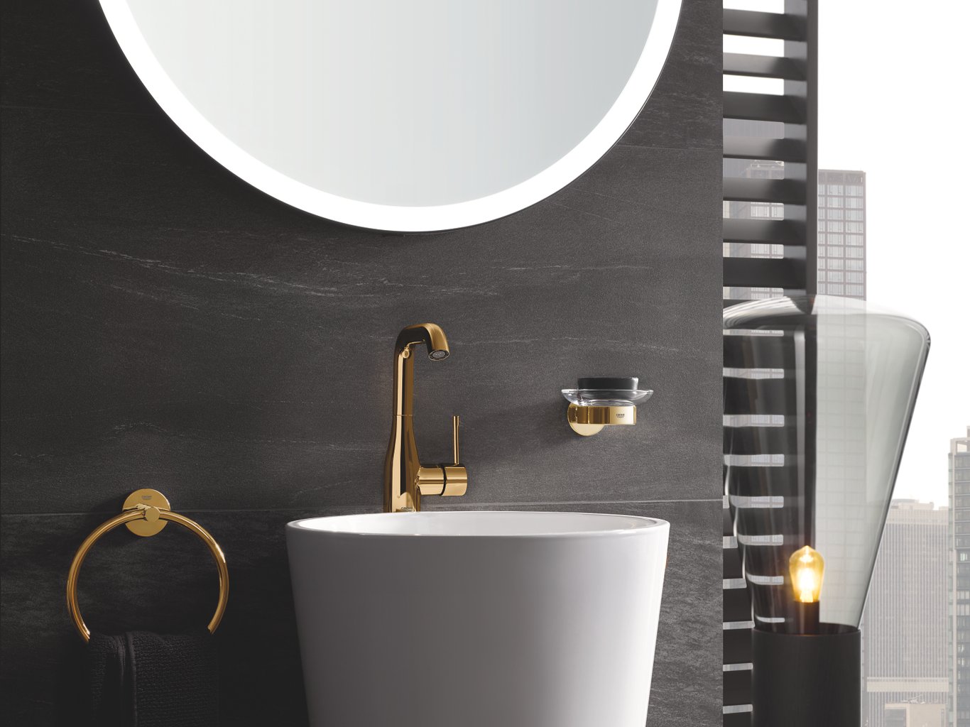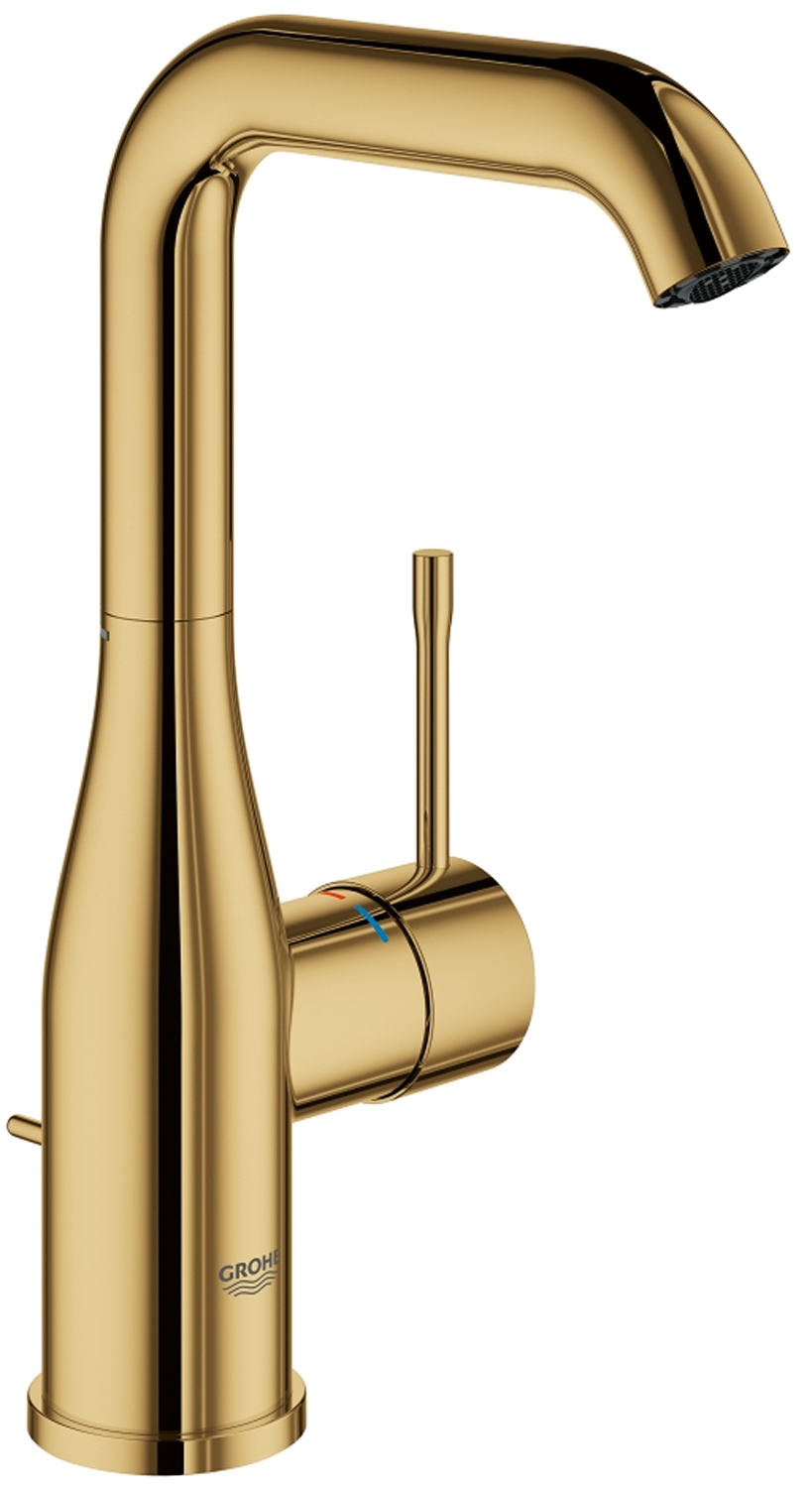 Ettgreps servantbatteriet GROHE Essence har unik buet og høy tut i Cool Sunrise med oppløftsventil og avløpsgarnityr. Det passer perfekt på alle stilrene og moderne baderom. Den er full av GROHE-teknologi og ekstremt brukervennlig. GROHE SilkMove keramisk patron gjør det enkelt å justere både vannmengde og temperatur. GROHE watersaving-teknologi begrenser vannforbruket til 5,7 l/min slik at du sparer både vann og penger. Den har til og med justerbar svingradius slik at du får total kontroll. Du kan låse fast tuten, begrense svingradiusen til 150 grader eller velge full fleksibilitet ved å la den svinge 360 grader. Du kan til og med stille inn vinkelen på AquaGuide-strålesamleren slik at den passer servanten. På den måten unngår du søl og sprut. GROHE QuickFix Plus-systemet reduserer monteringstiden for etthullsinstallasjonen med inntil 50 %! Dette monoblokkbatteriet er en ettertraktet kombinasjon av form og funksjon. Det passer perfekt sammen med andre produkter fra GROHE Essence-kolleksjonen i Cool Sunrise når du vil skape et sømløst baderom.