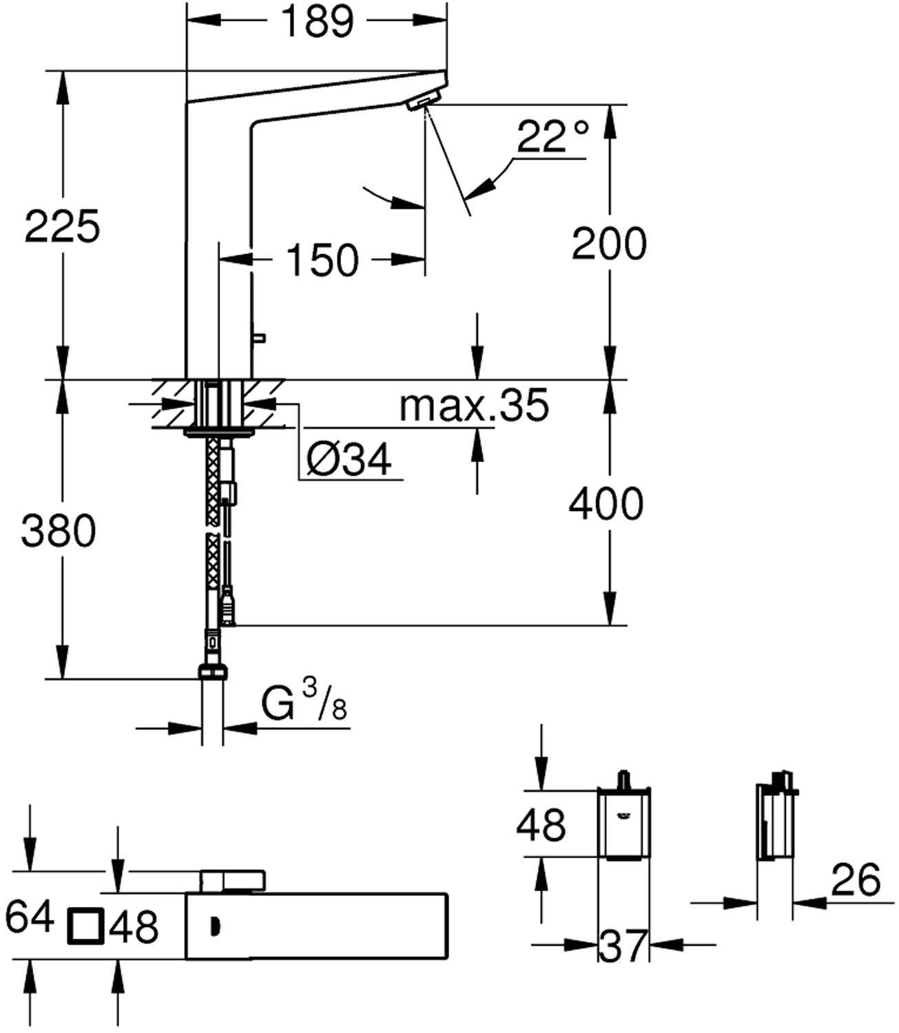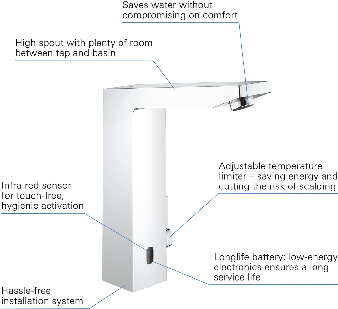 Grohe eurocube e 6v berøringsfritt servantbatteri krom