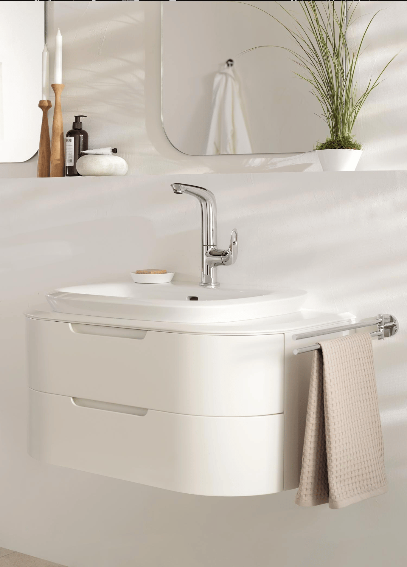 GROHE Eurostyle ettgreps servantbatteri – vannbesparende med høy, svingbar tut og oppløft og avløpsgarnityr.