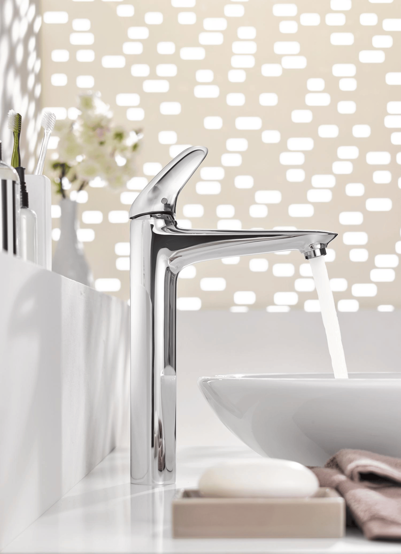 - GROHE watersaving® med vannsparingsfunksjon for redusert forbruk