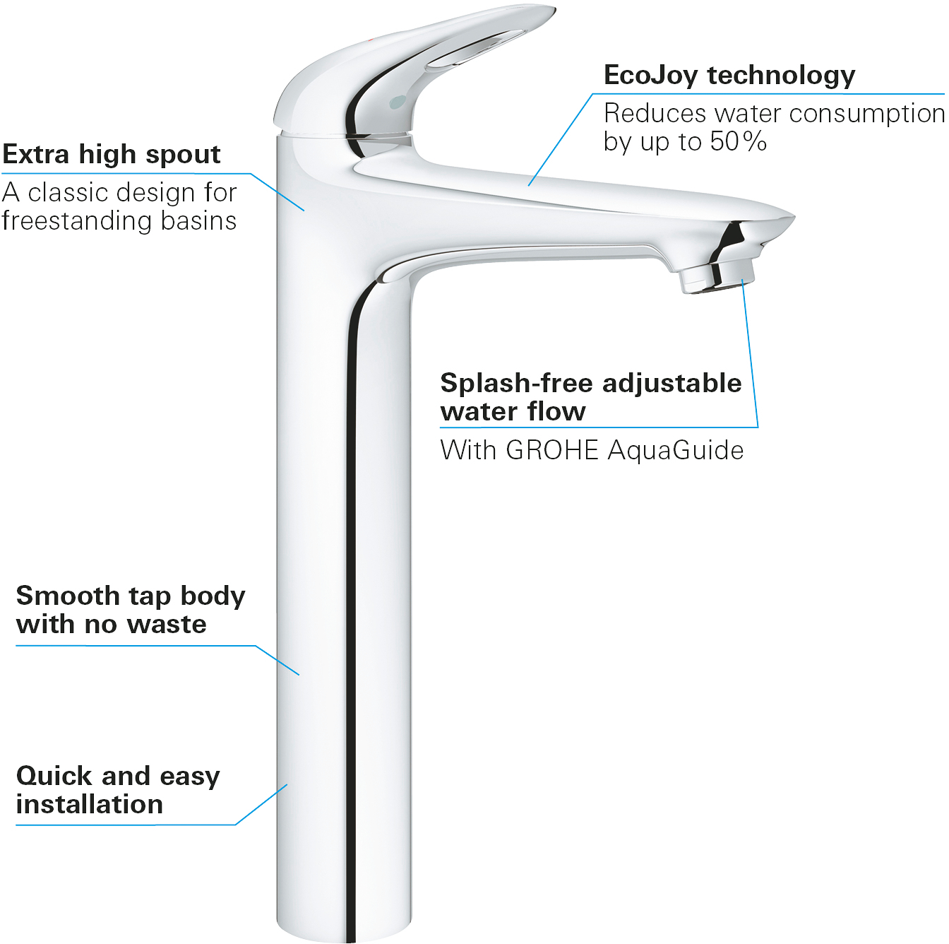 GROHE Eurostyle ettgreps servantbatteri – vannbesparende og i ekstra stor størrelse for bruk med frittstående servanter