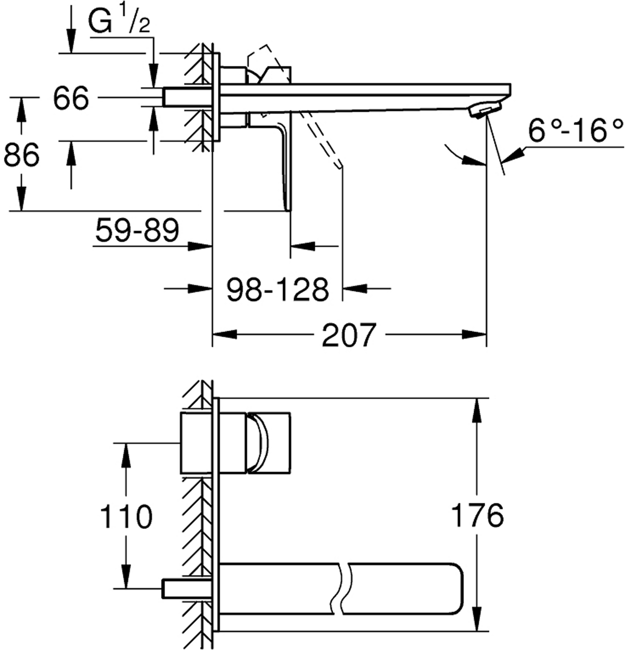 GROHE LINEARE 2-HULLS SERVANTBATTERI L BØRSTET HARD GRAFITT