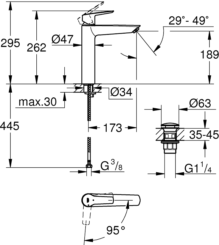 Grohe Start servantarmatur XL har et stilrent design og matt sort overflate, som gjør at den passer godt inn på ethvert moderne baderom. Servantarmaturen har ekstra høy tut, og gir derfor maksimal komfort for frittstående servanter.