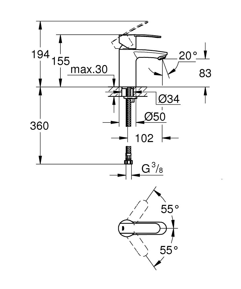 Grohe Wave Cosmopolitan servantbatteri kommer med et enkelt installasjonssystem, som består av få deler og er veldig enkelt å bruke. Kranen leveres med fleksible slanger og tydelige instruksjoner som gjør installasjonen til en lek.