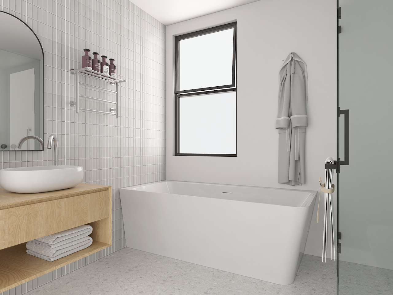 Celeste Taranto er et moderne badekar som passer godt inn i de fleste baderom. Det monteres med kortsiden mot venstre side av hjørnet.
